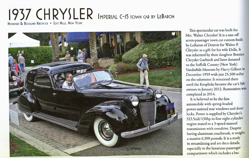 Chrysler's Chrysler was honored last Sunday at The Elegance at Hershey as the "Most Elegant American Closed Pre-war."