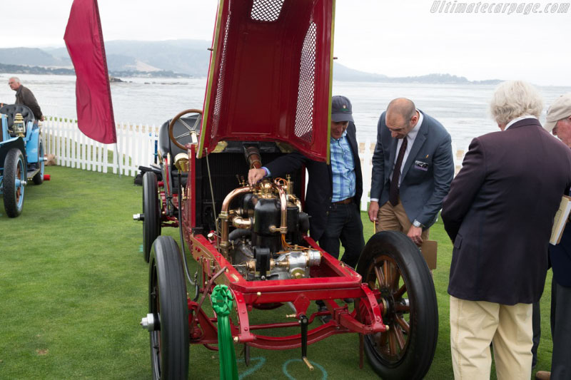 Okay, it isn’t on the ramp, but it would be for three awards. Here seen arriving during the Dawn Patrol is Rob Kauffman’s 1907 Renault AI 35/45 HP Vanderbilt Racer. It would win the Phil Hill trophy, the Revs Program at Stanford award, and its class for open-wheel race cars. These highly prized and priced Renaults—a nice one is easily more than $1 million—got their nickname because they were linked to “Willie K.” Vanderbilt, one of the better-known and financed auto racing enthusiasts of the early 1900s.