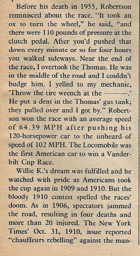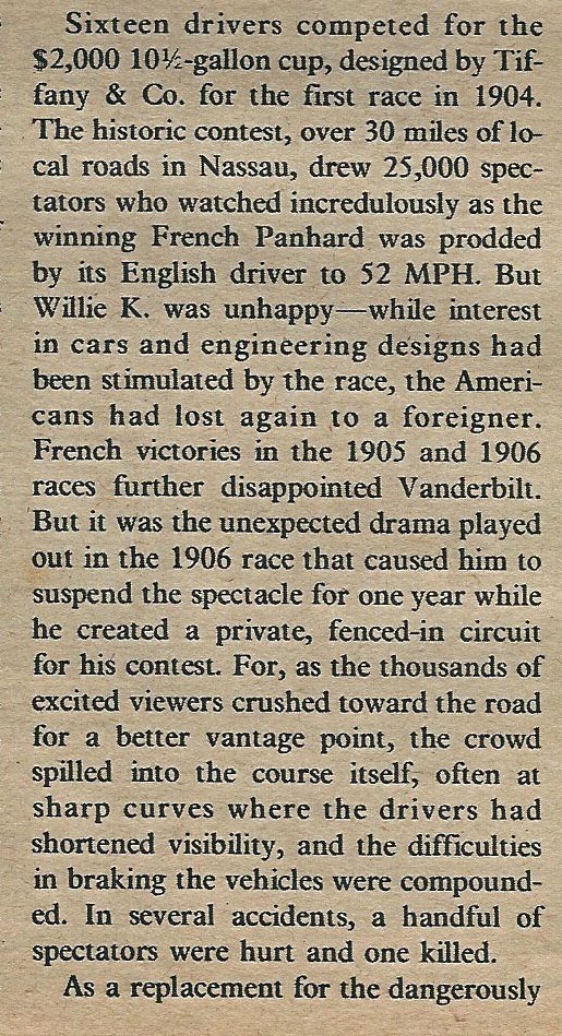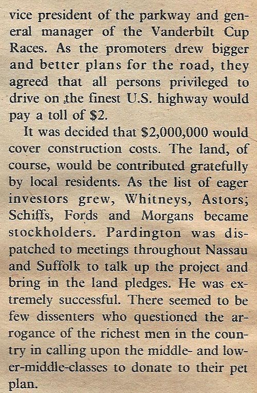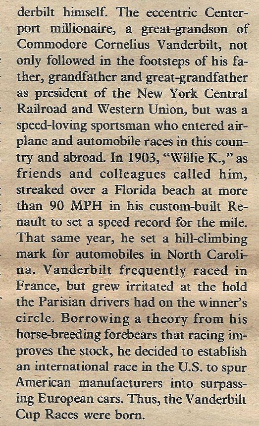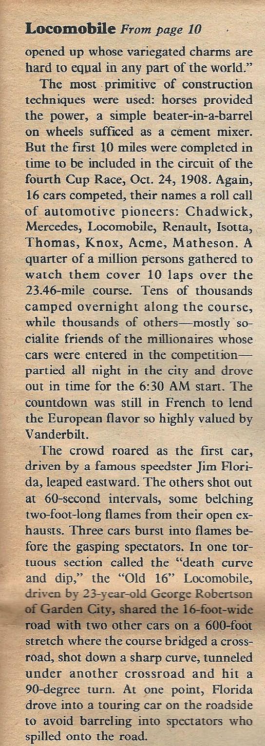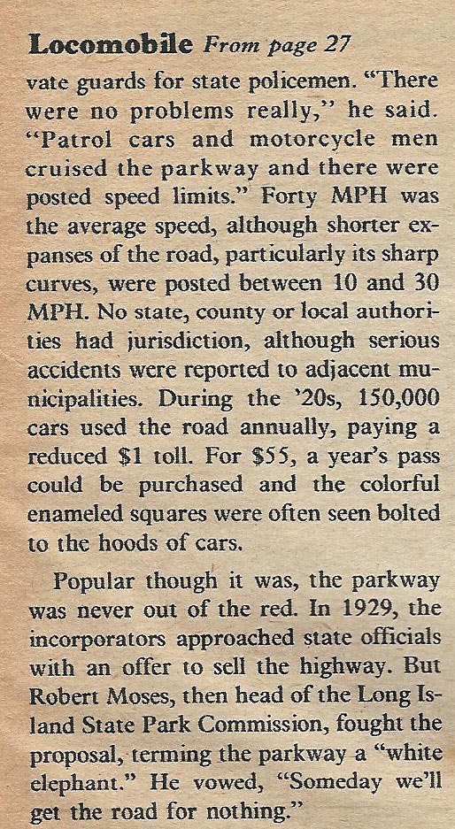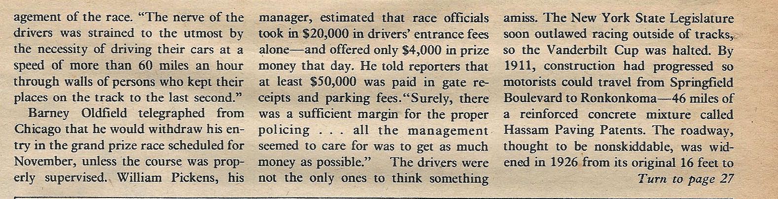 Note: While the article refers to the road as the Vanderbilt Motor Parway, the ccorrect name was always the Long Island Motor Parkway.