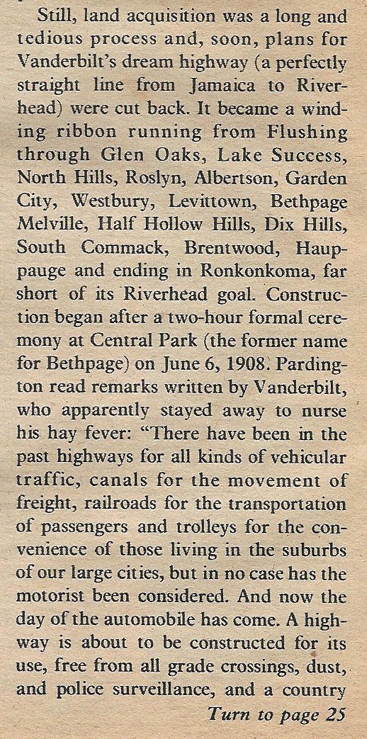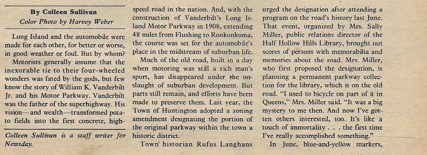 The Helck Family Memoirs: 1973 Newsday “What Ever Became of the Vanderbilt Parkway?” Updated 7/14/16