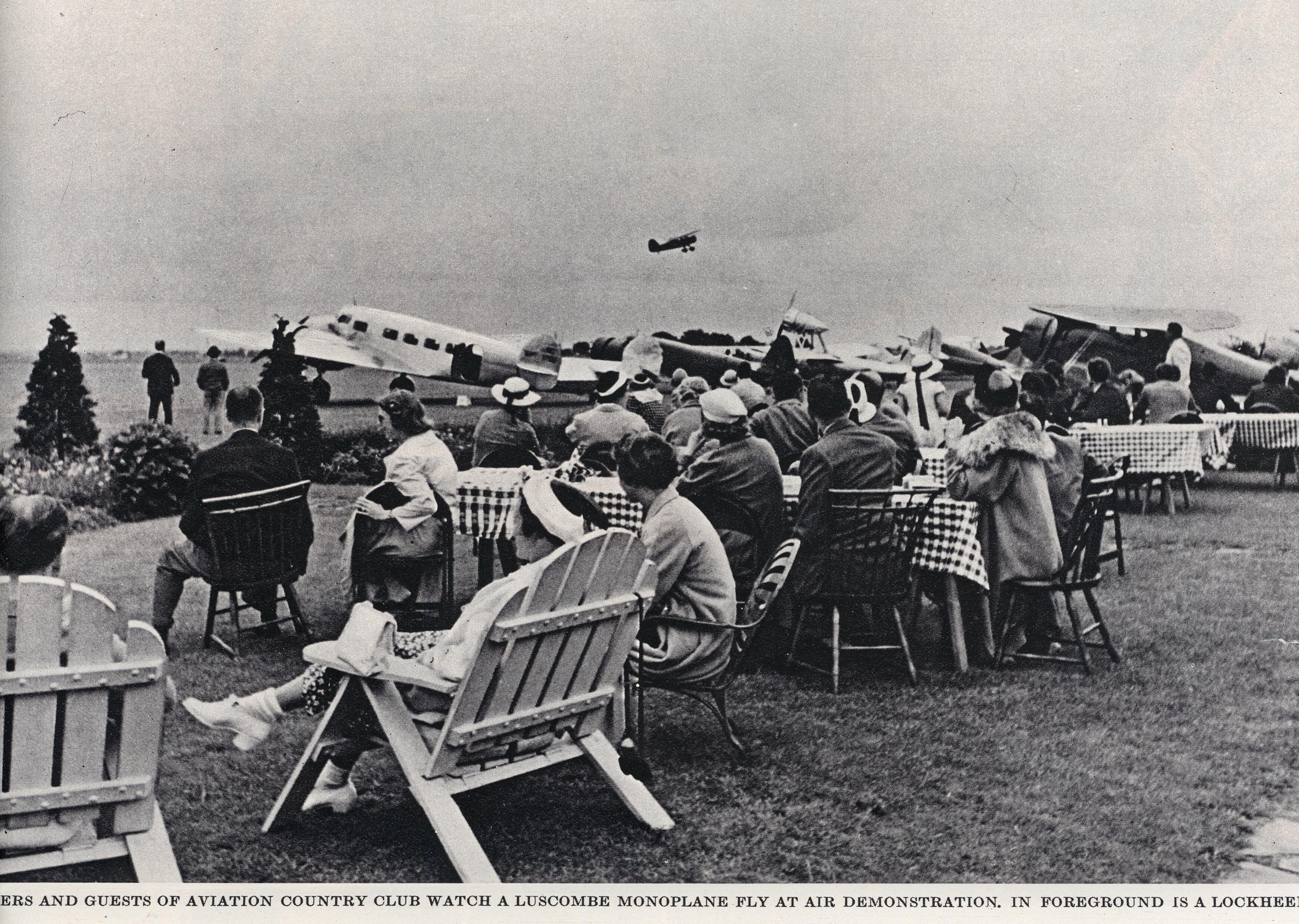A gathering of flying enthusiasts at the Long Island Aviation Club for an annual air show. Among the members was William K. Vanderbilt Jr. In the 1930s, the club requested permission to open an entrance to the adjacent parkway. To their surprise and dismay, Vanderbilt refused, not wanting to set a precedent.