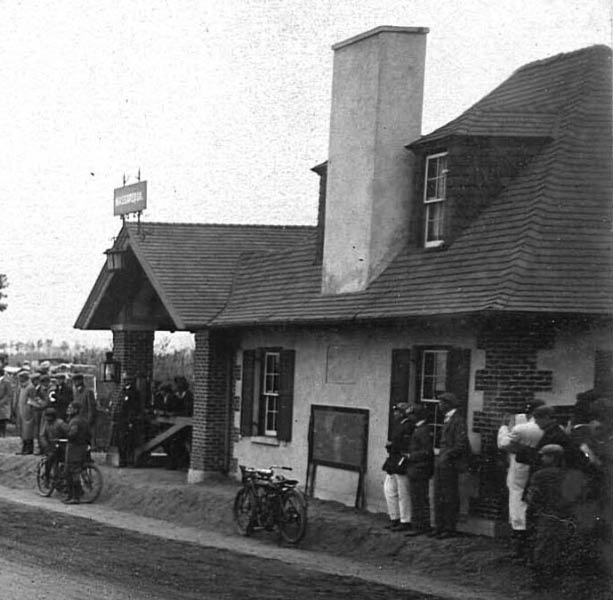 The Lodge was located west of Massapequa Road, now Massapequa-Hicksville Road.As one of the original three toll lodges built in 1908 and on the course for the 1908 to 1910 Vanderbilt Cup Races, the Massapequa Lodge is very well-documented.