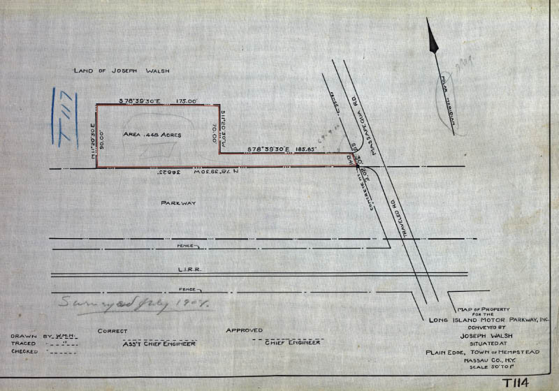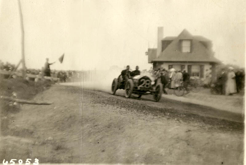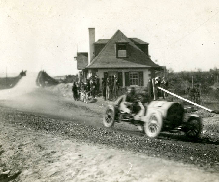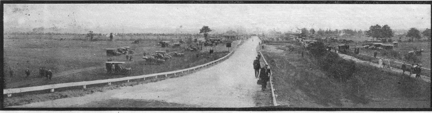 The Motor Parkway section for the 1909 and 1910 courses ended at the Massapequa Lodge. A temporary banked road connected the Massapqua Road.