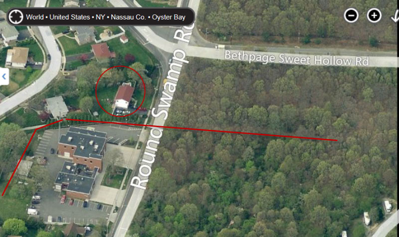 It is 12 motor lane I used to live there. There is or was a mound in front of the house that marked the spot. My mom told my the old motor parkway toll house used to be there. They butchered the trees off motor lane. Sad it used to be more shady. Any way I have pictures of the land the circled house was built on before it was built from the backyard of 12 motor lane back in the early 70s. It was all woods I remember when they tore it all down and built the house there. The house circled is on roud swamp it was built in the mid to lates 70s my parents bought 12motor lane in the early 70s and there was one previous owner. I remember older folks in the neighborhood would tell me this was all farmland when we moved out here. The neighborhood still looks nice just less trees.