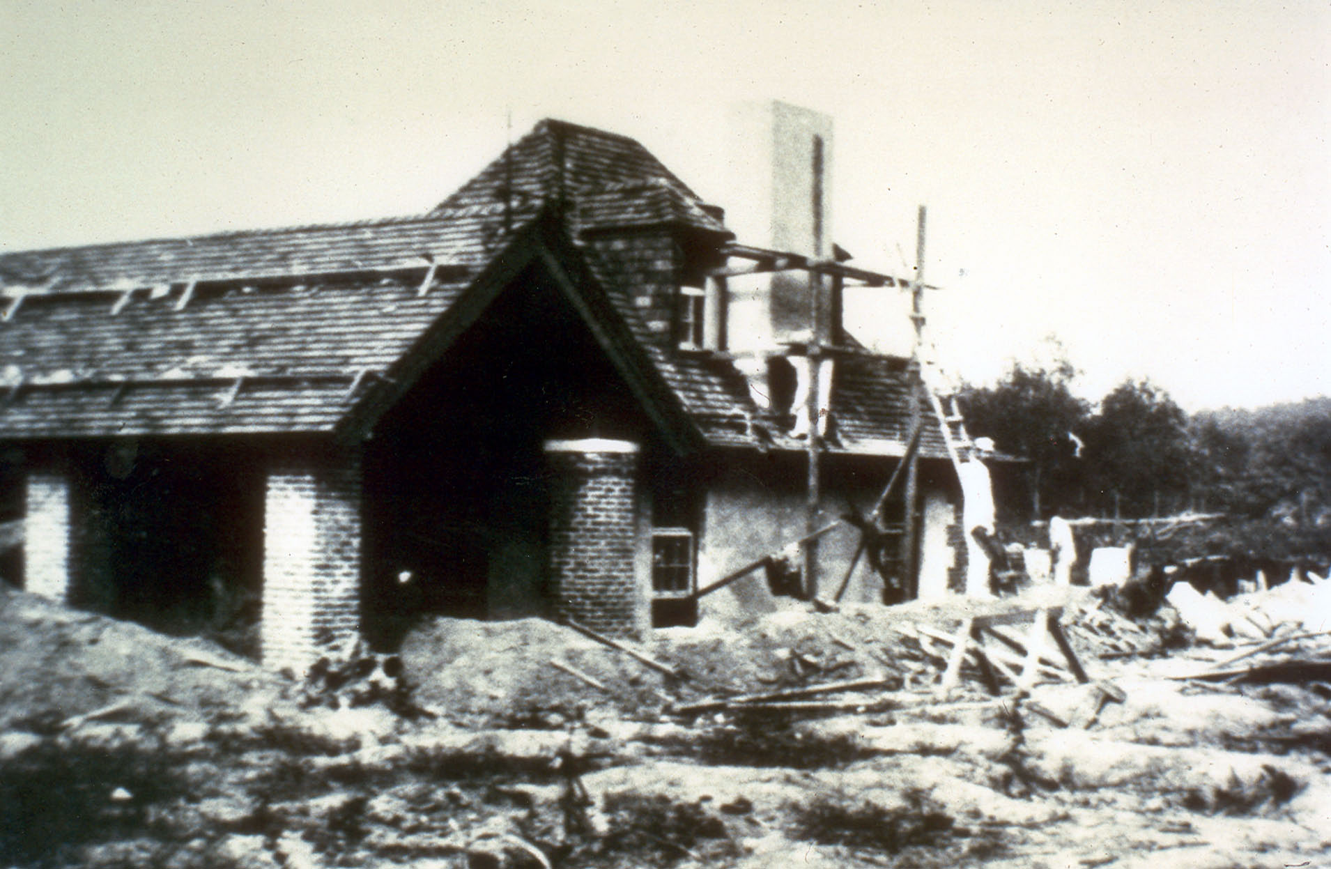 The abandoned lodge shortly before it was demolished in the early 1960s.