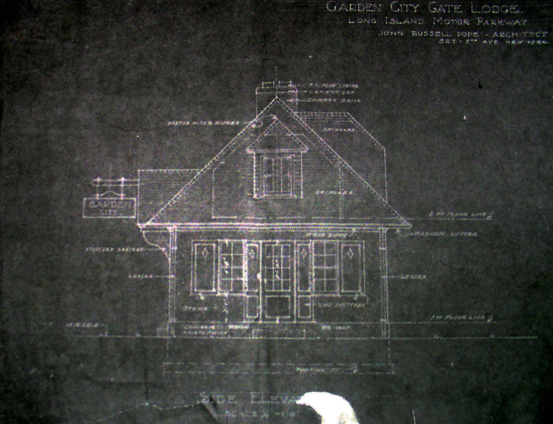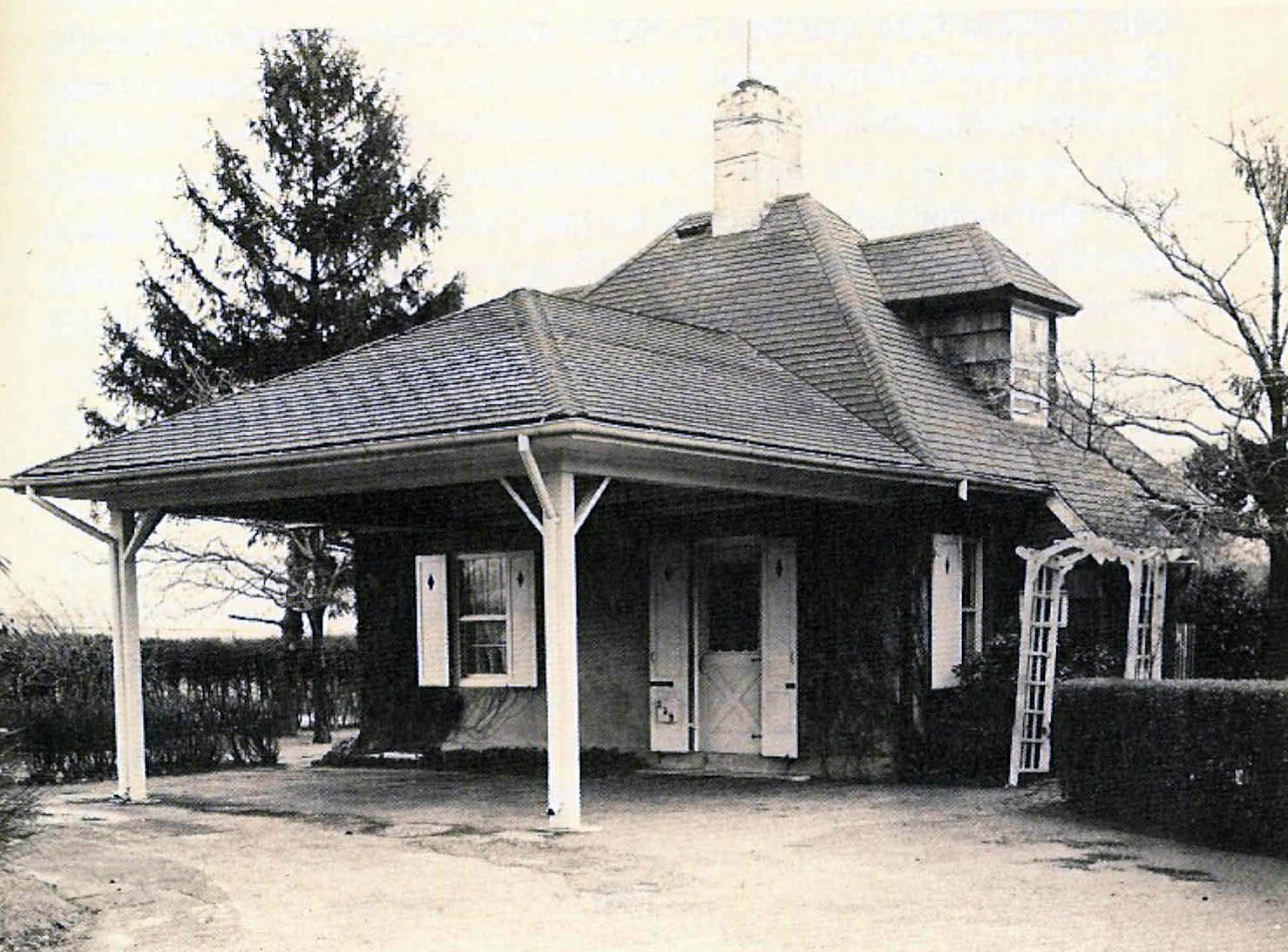 Russell's design for Garden City was identical to the Roslyn and Great Neck Lodges. The lodge had accommodations for the lodge keeper and his/her family.