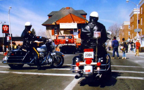 The lodge moving down Franklin Avenue to its new location behind a police escort.