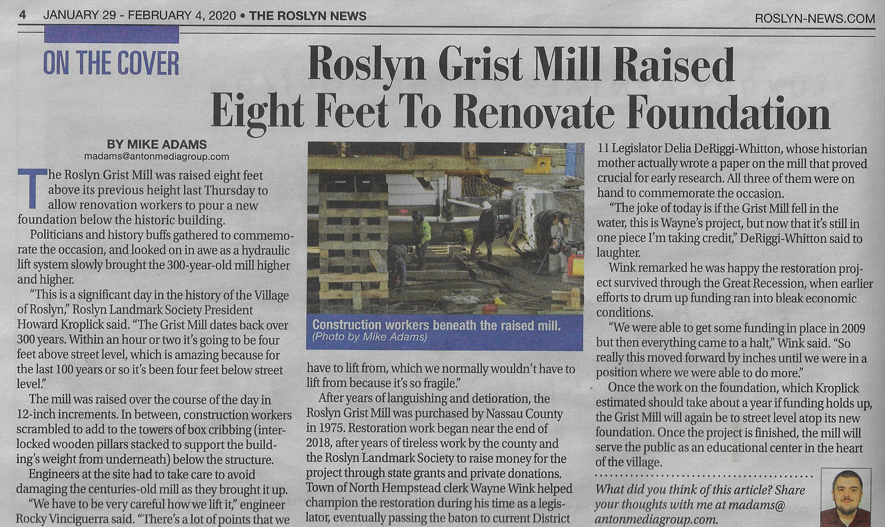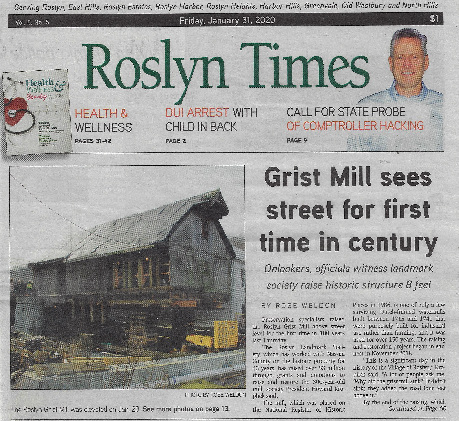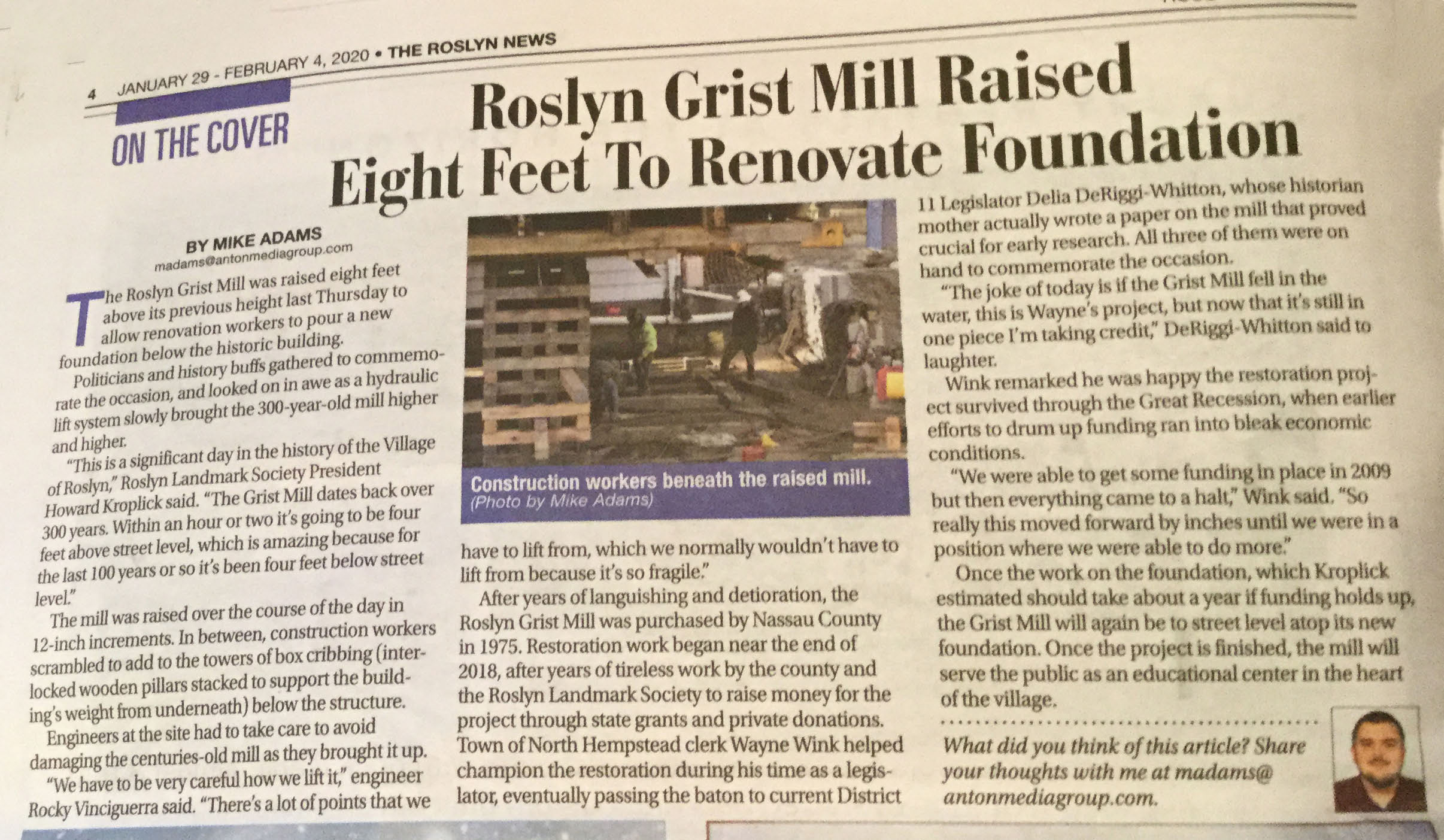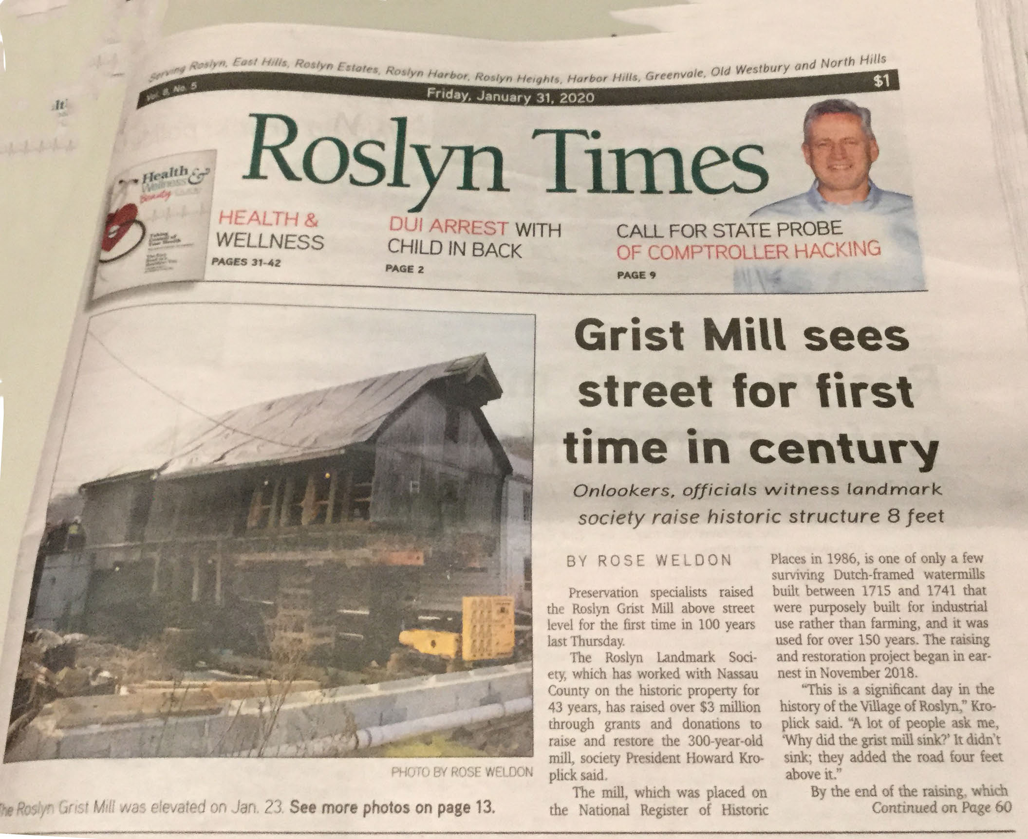 New York State, Roslyn Landmark Society Announce Raising of the Historic 1700s Grist Mill Above Street Level