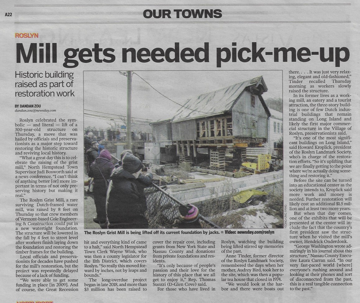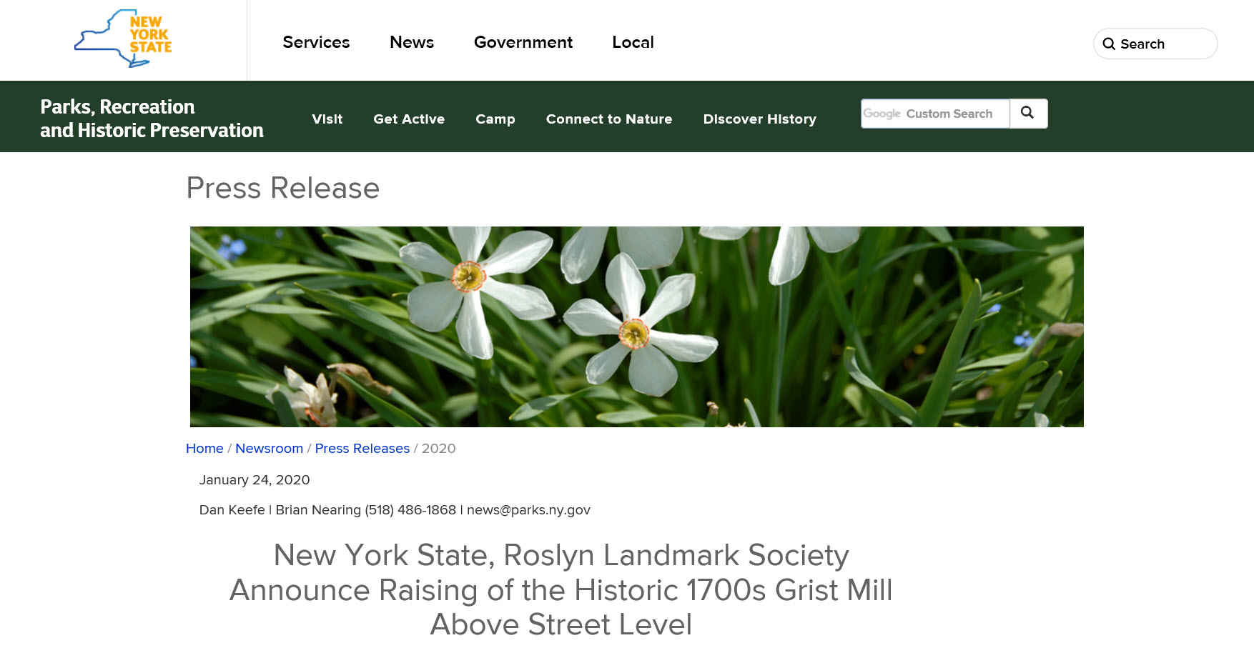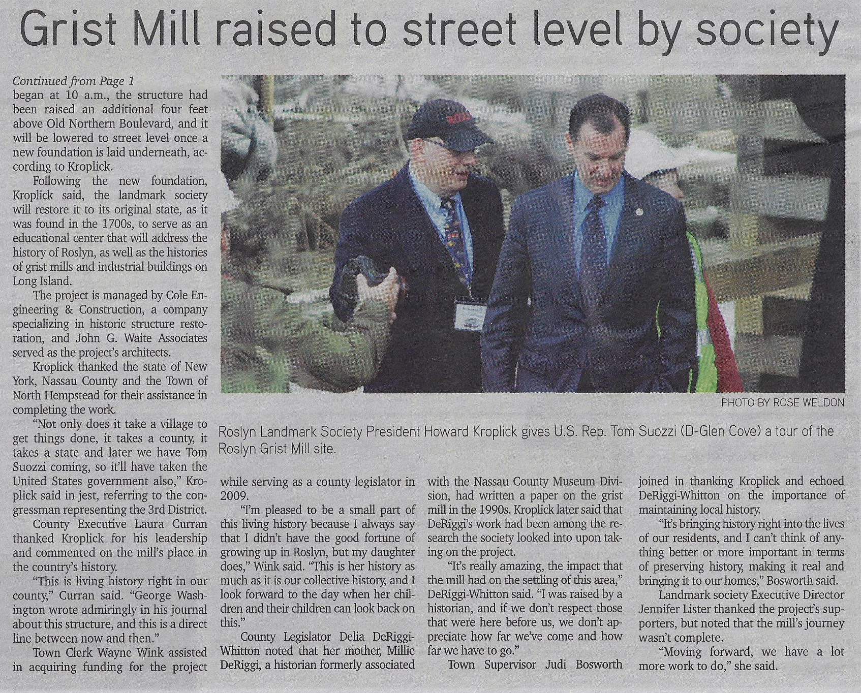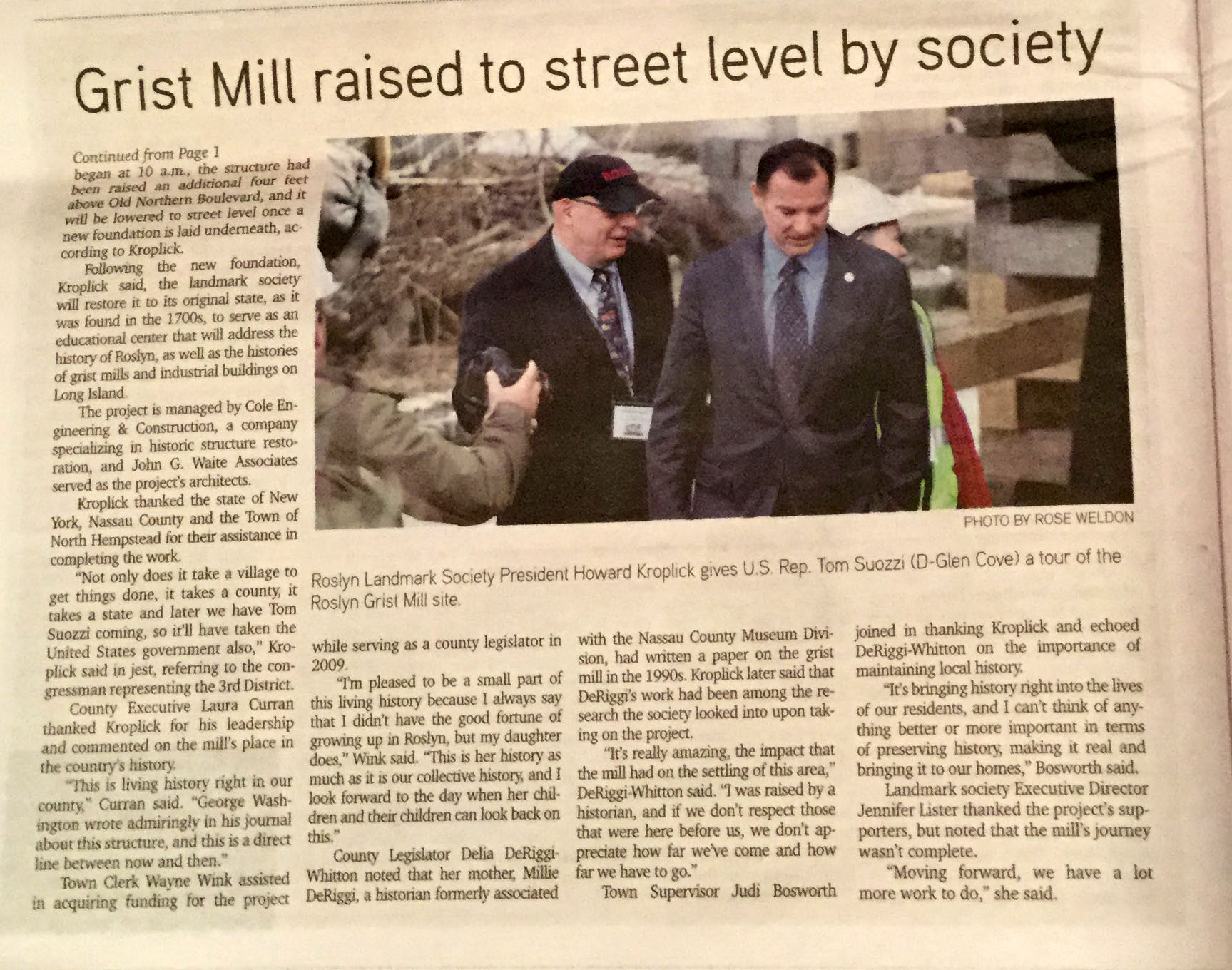 New York State, Roslyn Landmark Society Announce Raising of the Historic 1700s Grist Mill Above Street Level