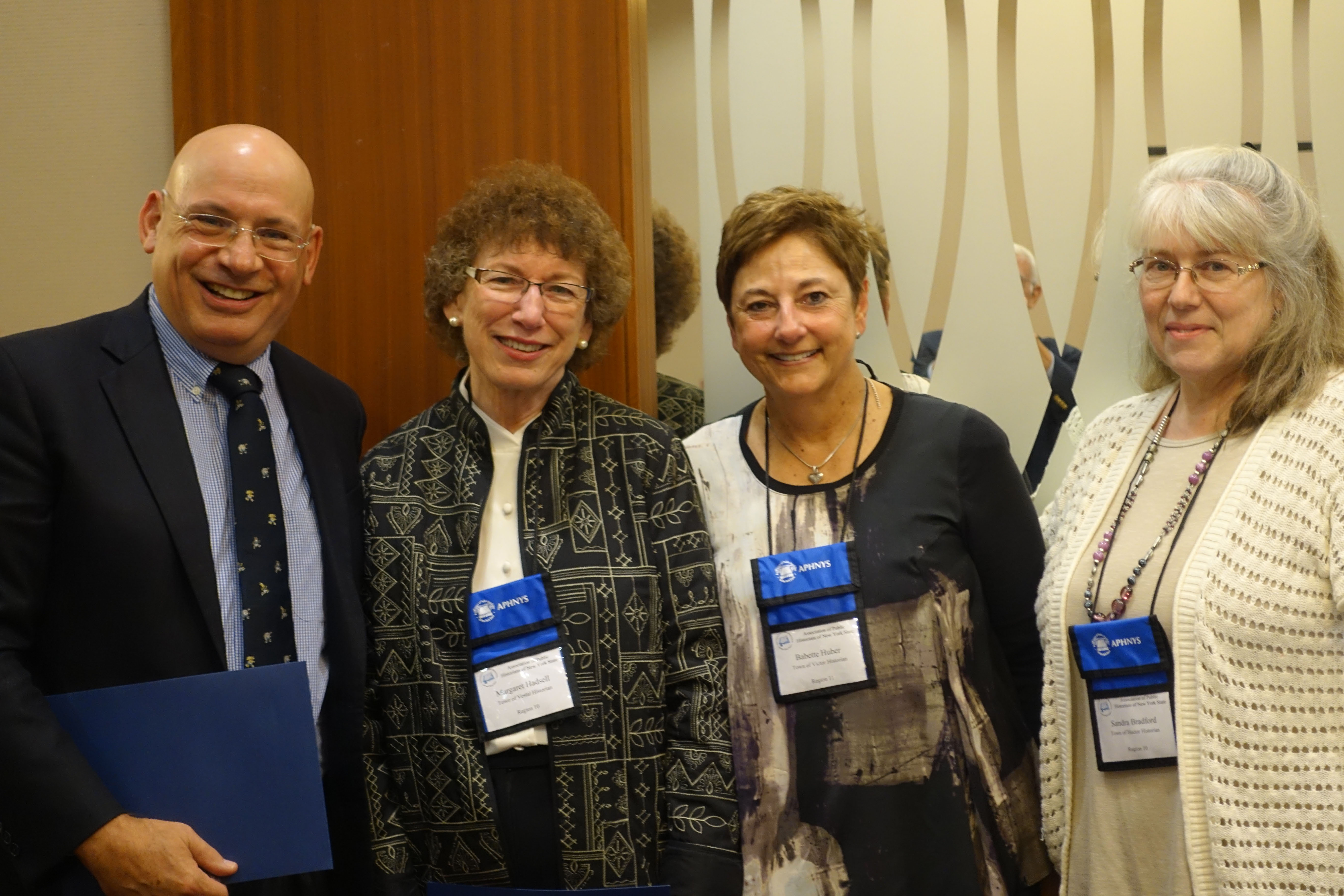 Town Historian Howard Kroplick, being named Registered Historian by the APHNYS Committee Margaret Hadsell, Town Historian of Vestal; Barbara Huber, Town Historian of Victor; and Sandra Bradford, Town Historian of Hector.