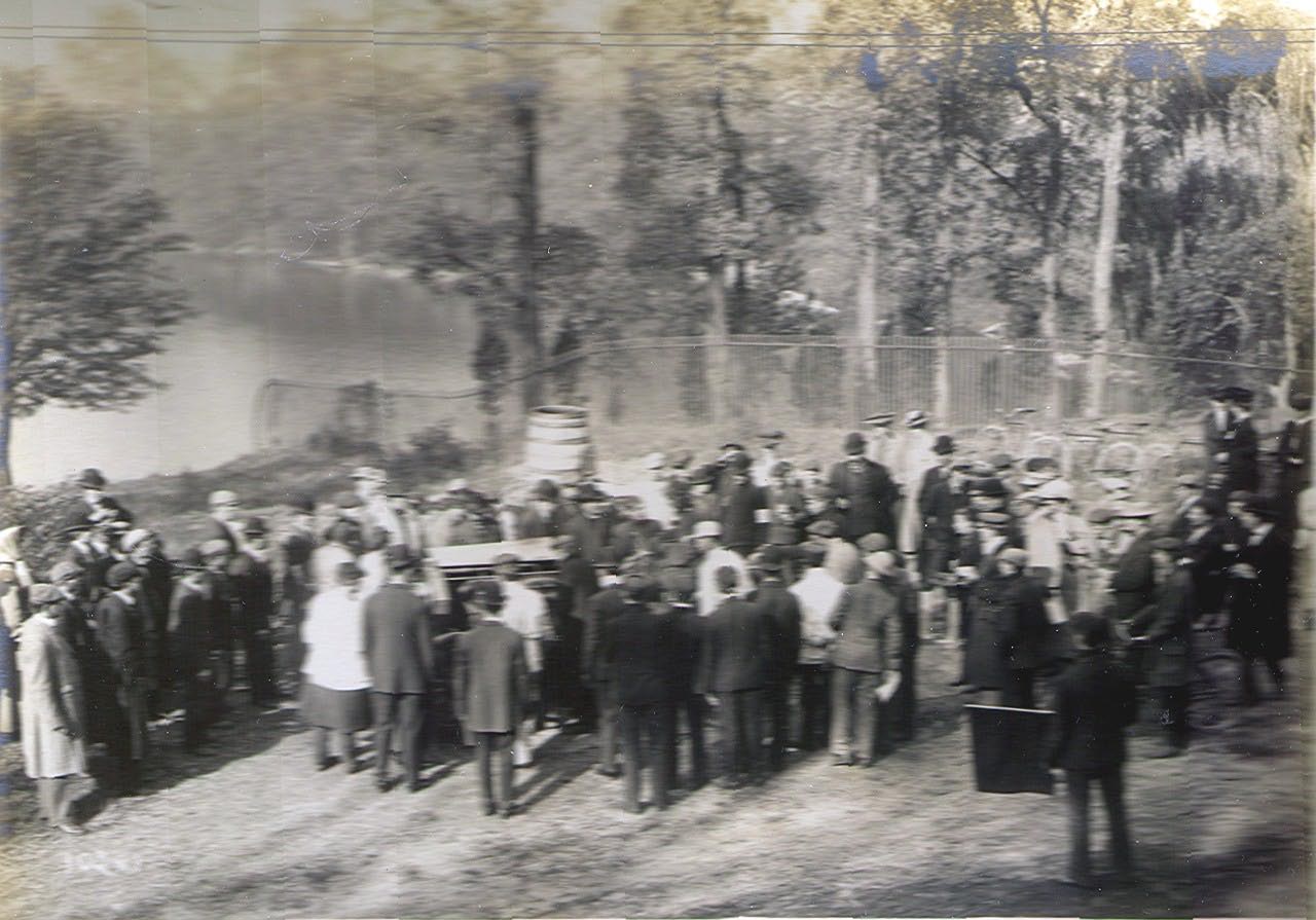 The iron fence in the background surrounded William K. Vanderbilt, Jr.'s Deepdale Estate.