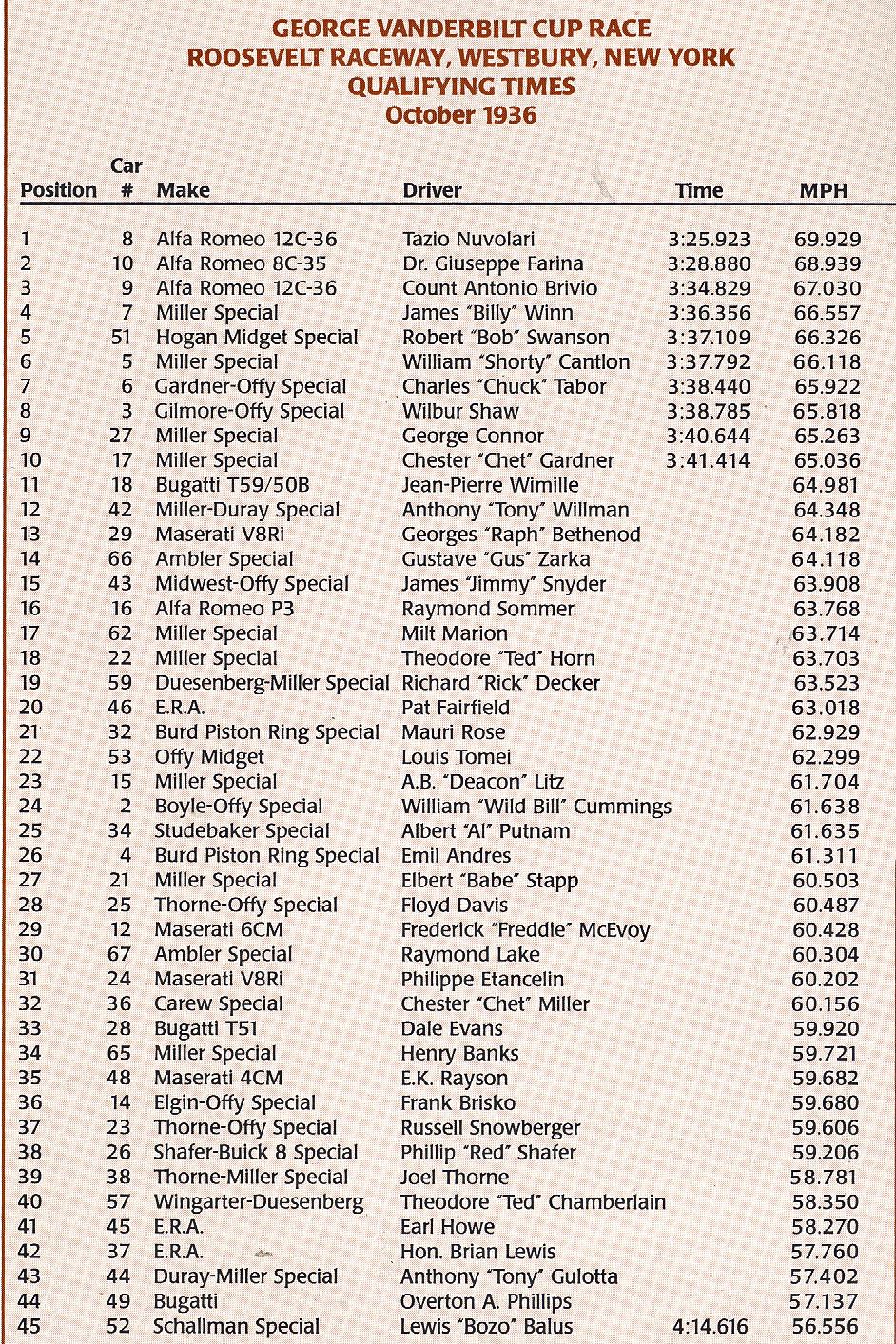 Joel Finn's excellent book "American Road Racing in 1930s" lists Swanson's #51 Hogan Midget Special as having the fifth fastest qualifying time while the #53 Offy Midget had the 22nd fastest time.