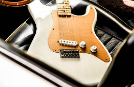 As we said earlier, playing the Gibbons Strat is like suspending the space-time continuum. That lightweight ash body contributes to amazing acoustic transparency and presence. And plugged in, it’s bridge-pickup Stratsville all the way—somewhat hot, but combined with the natural sustain and acoustic properties you’ll hear amazing harmonic detail and nuances. Up the amp gain and this guitar growls and barks. Hit some nice broken chords while picking close to the bridge and it’s too beautiful for words. The sonic detail is the result of the lightweight ash, that great Strat-like custom-wound “hot” single-coil, and a whole lotta mojo and x-factor that we can’t pinpoint. Often, great guitars—and great American cars from Detroit’s golden era of high-quality, high-performance design—just have that…thing! Hats off to Ford, Carroll Shelby, Leo Fender and Chris Fleming, and Reverend Billy for helping to make American design and culture the envy of the world.
