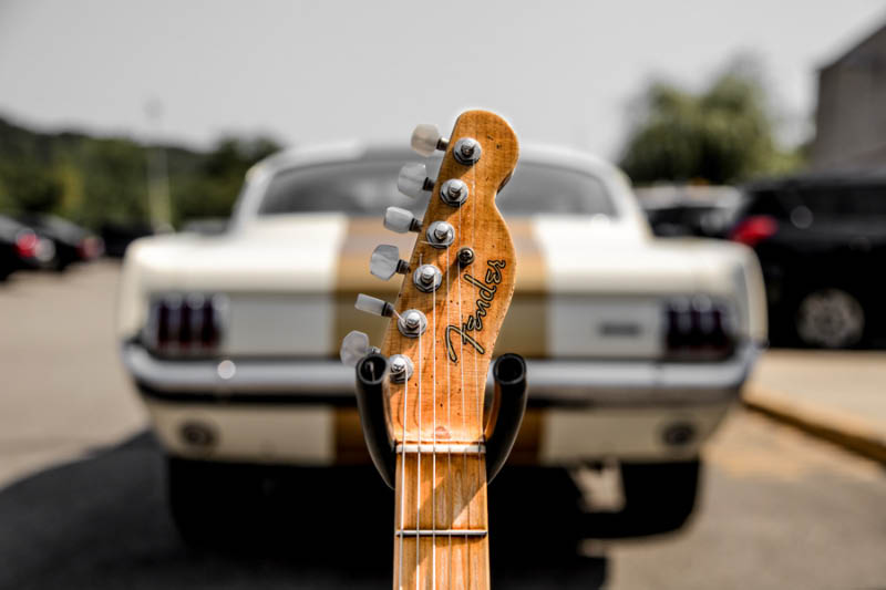TheMusicZoo.com has posted this wonderful article by Mike Bieber and photographer Walter Bryant on the meeting of my 1966 Shelby Mustang GT350-H and a Gibbons Fender guitar.