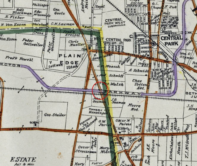 Sam III, you are pointing to the Central Avenue Bridge that went over both the road and the LIRR. The Nibbe Farmway Bridge was located near the bottom of the “M” on the map. The map did not indicate the bridge. These posts may be helpful: http://www.vanderbiltcupraces.com/blog/tag/tag/stymus+farm
