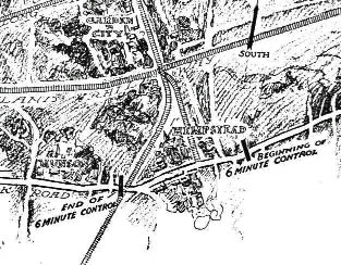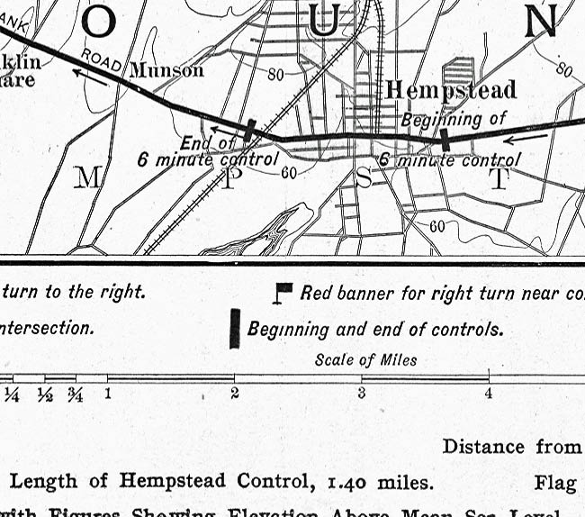 The length of the Hempstead Control was 1.40 miles. Racers had six minutes to drive the 1.4 minutes (only 14 miles per hour). This time was deducted from their total race time.