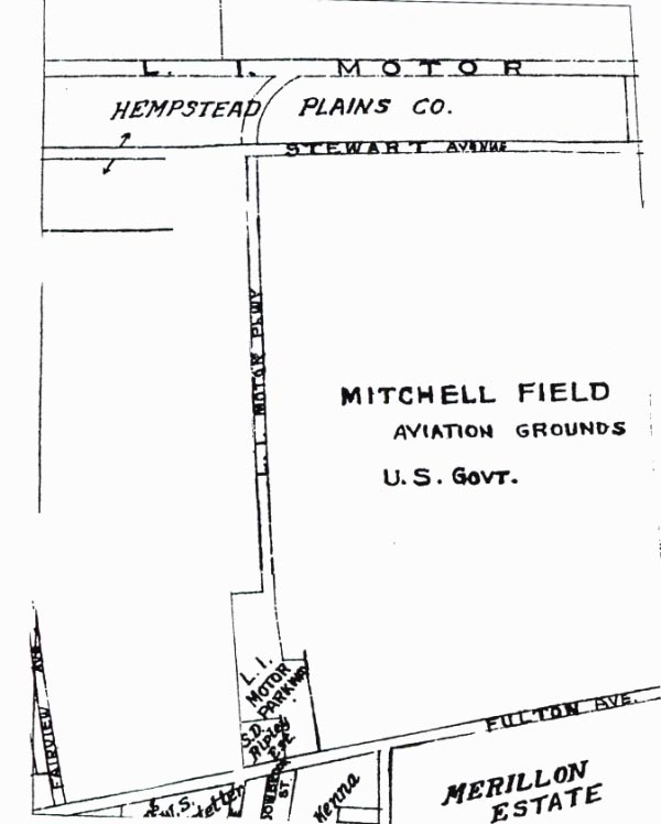 It is my belief that since no races were held at the Grandstand after 1910 (the year Penn Station opened), this indeed was a short-lived (two or three years) station that was first called Motor Parkway, was replaced with a Camp Mills station further east in 1918 and another station called Mitchel Field was established sometime in the early 20’s. Motor Parkway was probably nothing than a cinder platform with a rude wooden shelter as was Mitchel Field.