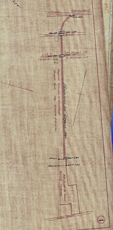 This survey indicated that the Town of Hempstead had a plan to extend California Avenue (which still ends south of Fulton Avenue) to Old Country Road. Note the reference to the "Spur".