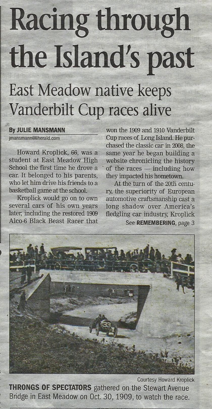 my great grandfather had a boarding house in Lake Ronkonkoma his son Merrit had some involvement with the race. Before WWI he was going to try to help find crews to extend the race track to Riverhead. If you ever visit the Ronkonkoma museum you can see a picture of the Locomobile at the finish line. The war changed everything and the racetrack was shelved.