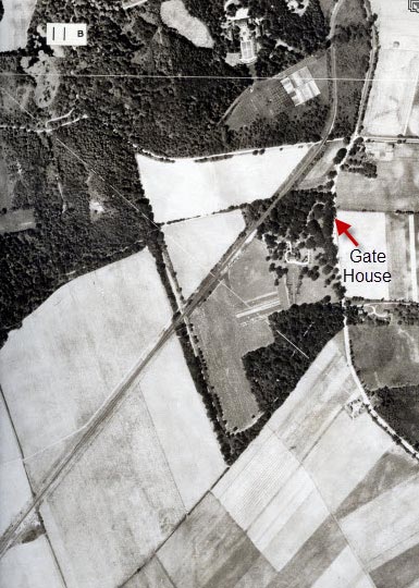 In this 1924 aerial, the gate lodge was hidden by trees.