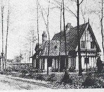 Then 1921: A view of the east side of the gate lodge. The stone wall was on the west side of Lakeville Road.