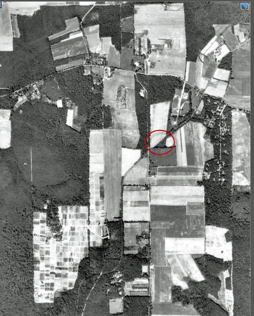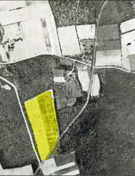 The highlighted Baylis property and the Motor Parkway can be seen in relation to Burrs Lane (left) annd Half Hollow Road (across the middle of the aerial).