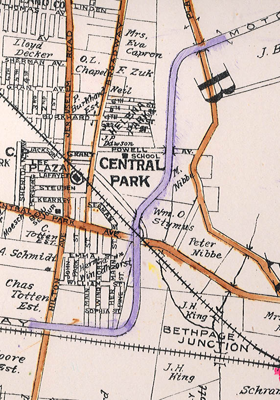 The location of the first "Deadman' Curve" near Bethpage Junction and the second "Deadman's Curve" north of "Central Park Avenue"are shown on this map.