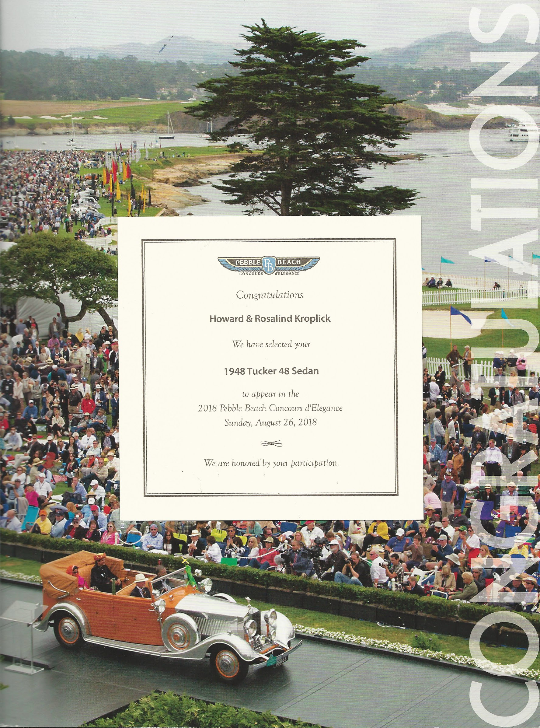 Roz and I are very proud to announce that Tucker 1044 has been selected to appear in the 2018 Pebble Beach Concours d'Elegance.