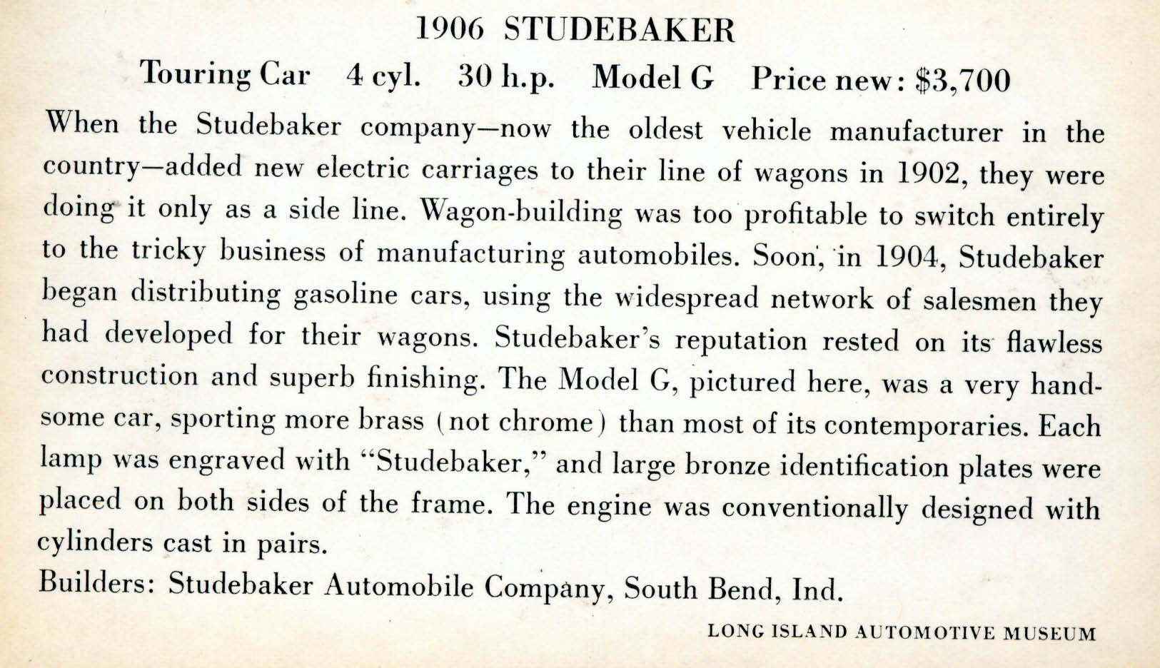 #14: 1906 Studebaker, Touring Car, 4 cylinders, 30 HP, Model G, Price new: $3,750