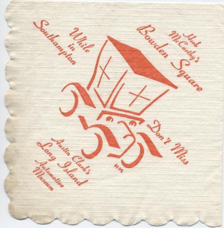 “Rt. 39, Southampton, SO 1-1880. Open Daily, June-Sept., week ends late May, Oct., 9-5. Adults 50 cents, children 25 cents. Largest museum in world devoted exclusively to history of the automobile. Henry Austin Clark, Jr. collection of 100 antique cars, trucks, fire engines, including steam, electric and gasoline models dating from 1896.