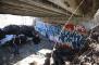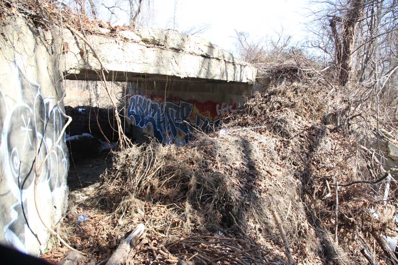Graffiti covers both sides of the 1910 bridge and the abutments.