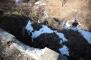 Debris dumped by the Organic Restoration Farm is piled high on both sides of the bridge.