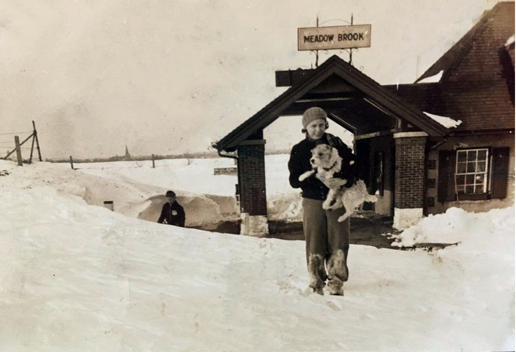 Bill's mother Doris in front of a snowy lodge approximately in 1928-29. A year or two earlier in 1927, Bill recalled that his mother told him how she and the family witnessed Charles Lindbergh taking off on his historic flight crossing the Atlantic Ocean. Of course, they had front row seats with their unique vantage point.