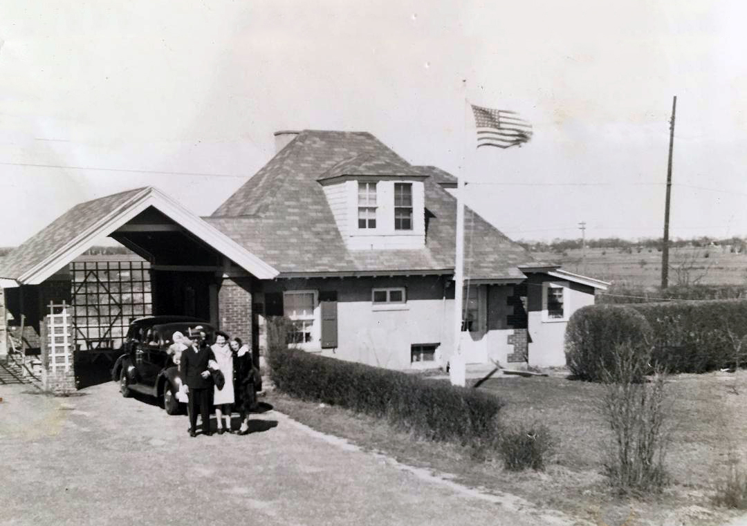 The family well dressed on their way out shortly after the parkway closed. Notable in the photo is the newly installed flag pole, signage removed from the lodge and decorative lattice in the rear of the porte cochere. Otto did a beautiful job of turning the once former lodge into a warm, loving home for the family as evidenced by this happy photo. Difficult to determine, but any guesses on the year and make of the car?
