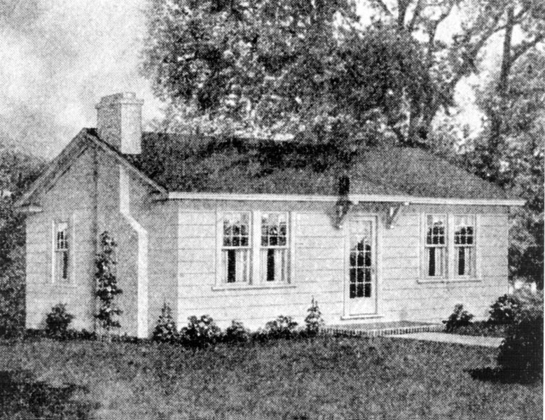 Howard Kroplick Note: Rather than build a lodge from scratch with a design from the now famous John Russell Pope, the Motor Parkway chose to purchase a pre-cut four room bungalow. According to Al Velocci in his book "The Toll Lodges of the Motor Parkway, and Their Gatekeepers' Lives", the bungalow was ordered from Aladdin Redi-Cut Houses of Bay City, Michigan. Unlike the Russell lodges, the bungalow offered a single floor with a kitchen, dining alcove, living room, two bedrooms and space for a bathroom. This model was used for the Ronkonkoma Lodge, Mineola Lodge and the Huntington Lodge.