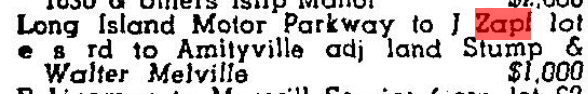 If the true spelling is Zapf, interesting coincidence in that my friend whose house sits on the Mayan Ruins in Garden City which we visited last year is also named Zapf. While I don’t believe they are related (I’ll do some researching) that would be two different Zapfs living on the Motor Parkway (one in Garden City and one in Huntington).