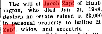 Al - In your book, and as Howard mentions, I see the name of the future owner of the lodge property as Zaph. As Maureen remembers the owners were Zapf. A 1941 map of the area also shows the area owned by a J. Zapf and there’s a 1948 newspaper article in the Long-Islander of the $3,000 estate of a Jacob Zapf of Huntington going to his wife, Isaline. His death in ‘48 would tend to be in sync with the purchase of the property by Maureen’s parents around ‘49 or ‘50.