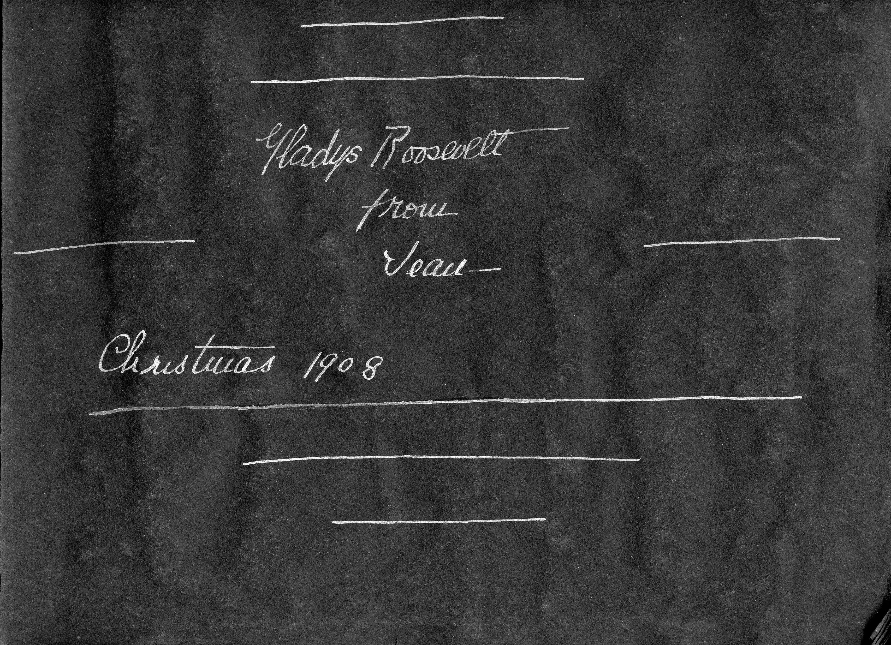 Jean Roosevelt (1891-1984) was Gladys' younger sister. On December 25, 1908, 17-year old Jean gave her sister a blank photo album as a Christmas gift.