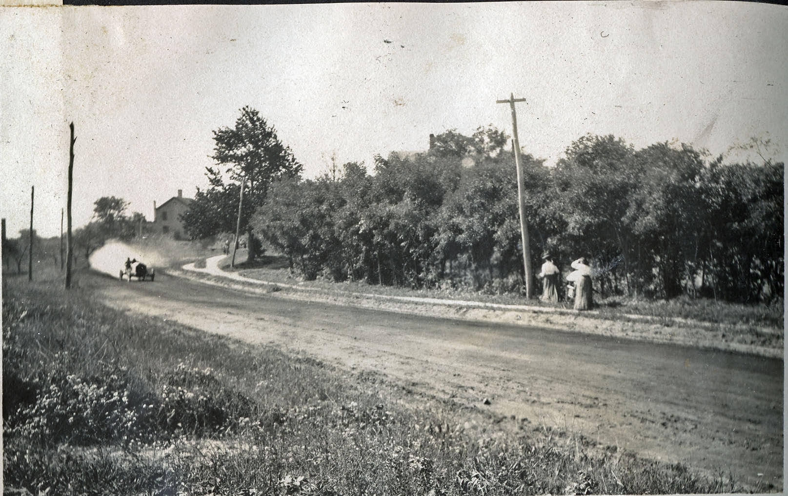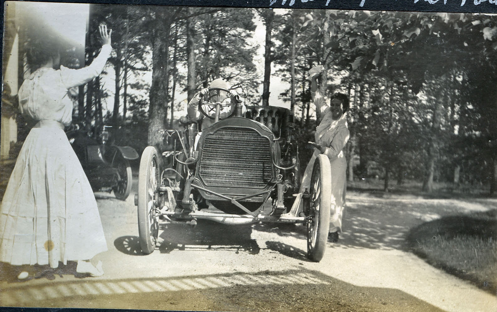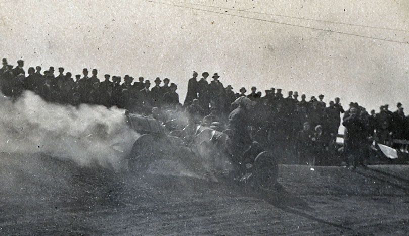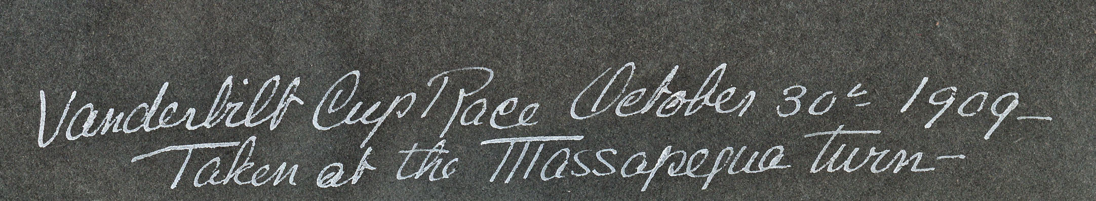 20-year old Gladys Roosevelt documented the 1909 Vanderbilt Cup Race as a spectator at the Massapequa Turn, a temporary banked curve linking the Long Island Motor Parkway to the Massapequa-Hicksville Road.