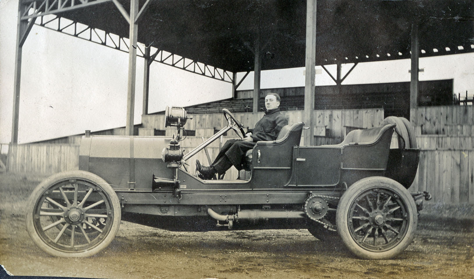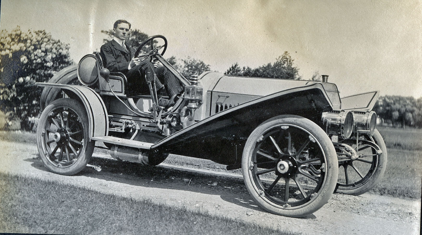 Caption: William (Bruce-Brown, David Bruce-Brown's brother) in his 50 hp Simplex on the Motor Parkway, May 1910.