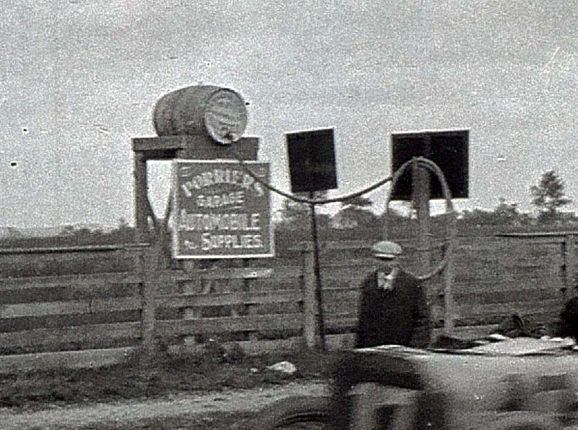 Holes were cut in the frame of the Simplex prior to the race in order to make the weight requirements. Almost immediately the car began collapsing. In this photo, the Simplex had lost its rear left tire as it approached the Hempstead Control on Fulton Street.