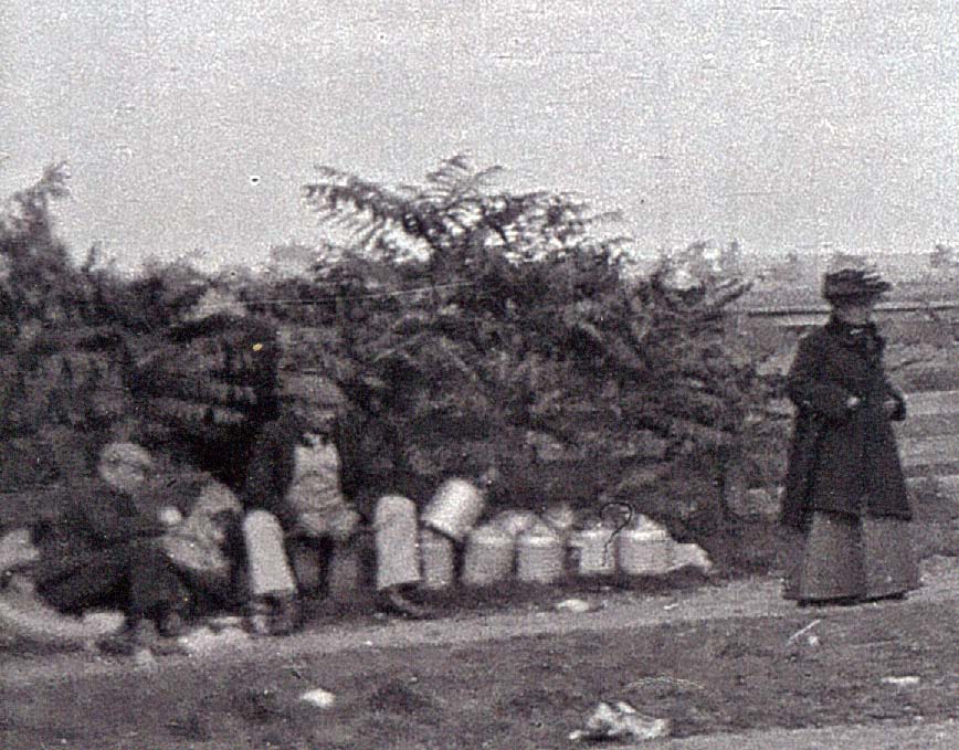 Supply men awaiting action and an excited spectator.
