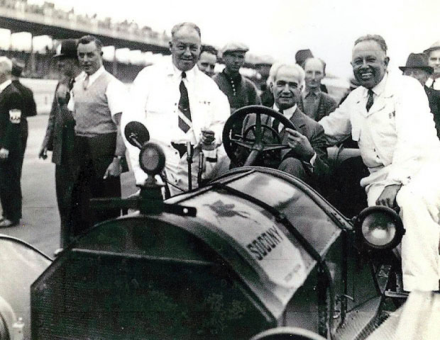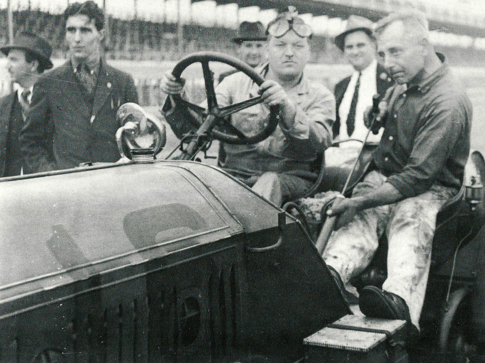 Jerry Helck: "The year was 1936 and George Robertson (who was nominally General Manager and Vice-President of Roosevelt Raceway) drove the car on which he had won the 1908 Vanderbilt Cup Race It was a "demo lap" around the simulated road course "