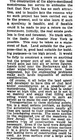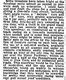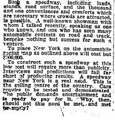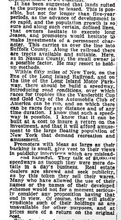 The reason why the Hempstead Plains Motor Parkway Speedway was never built was explained here:
