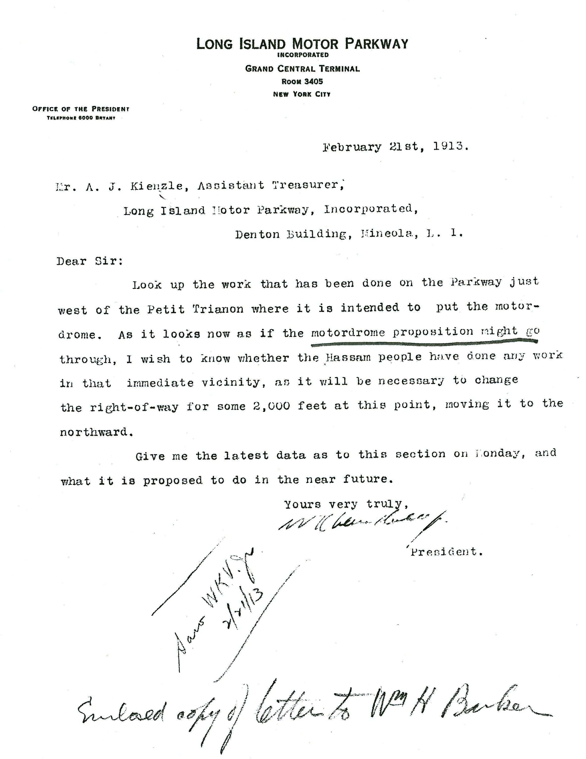 Letter from William K. Vanderbilt, Jr.- February 21, 1913