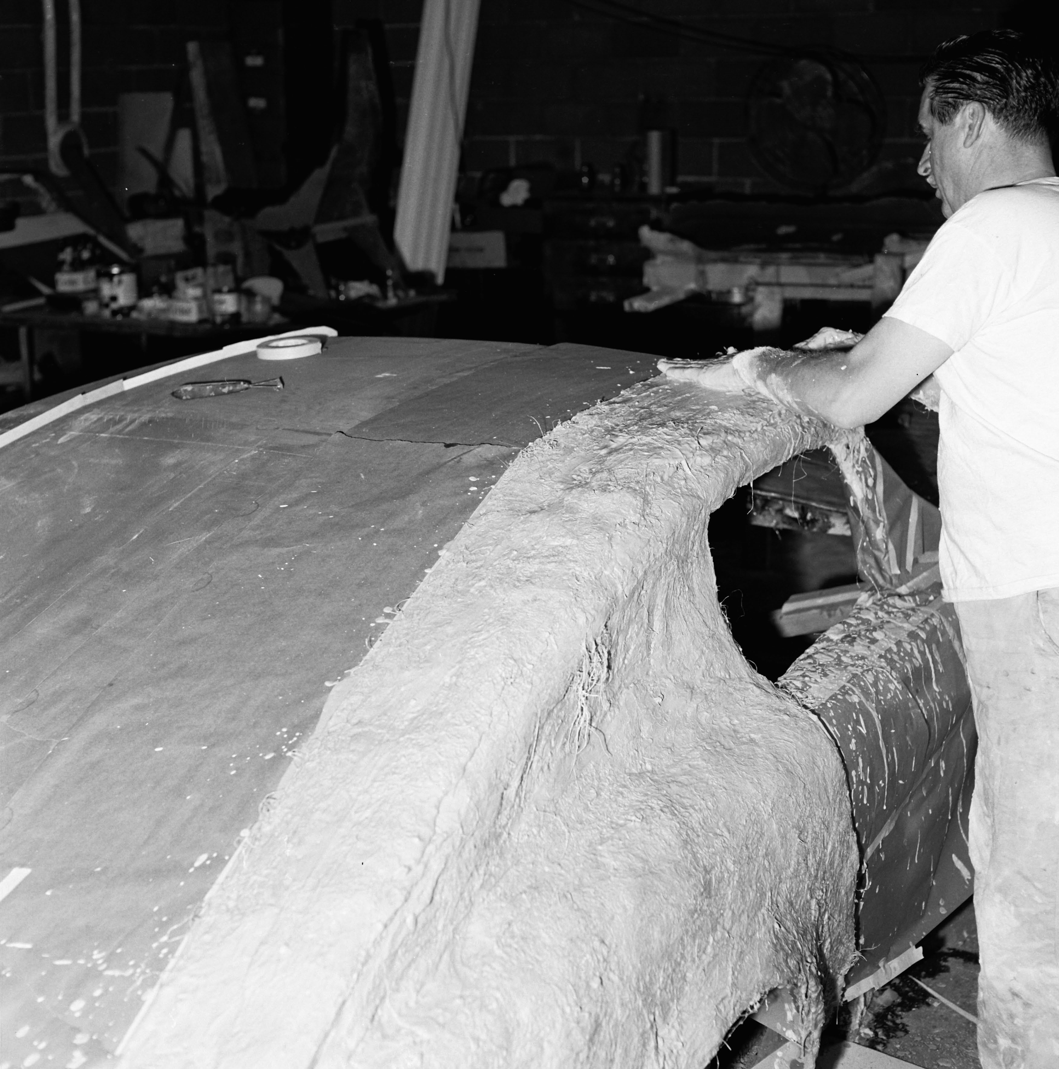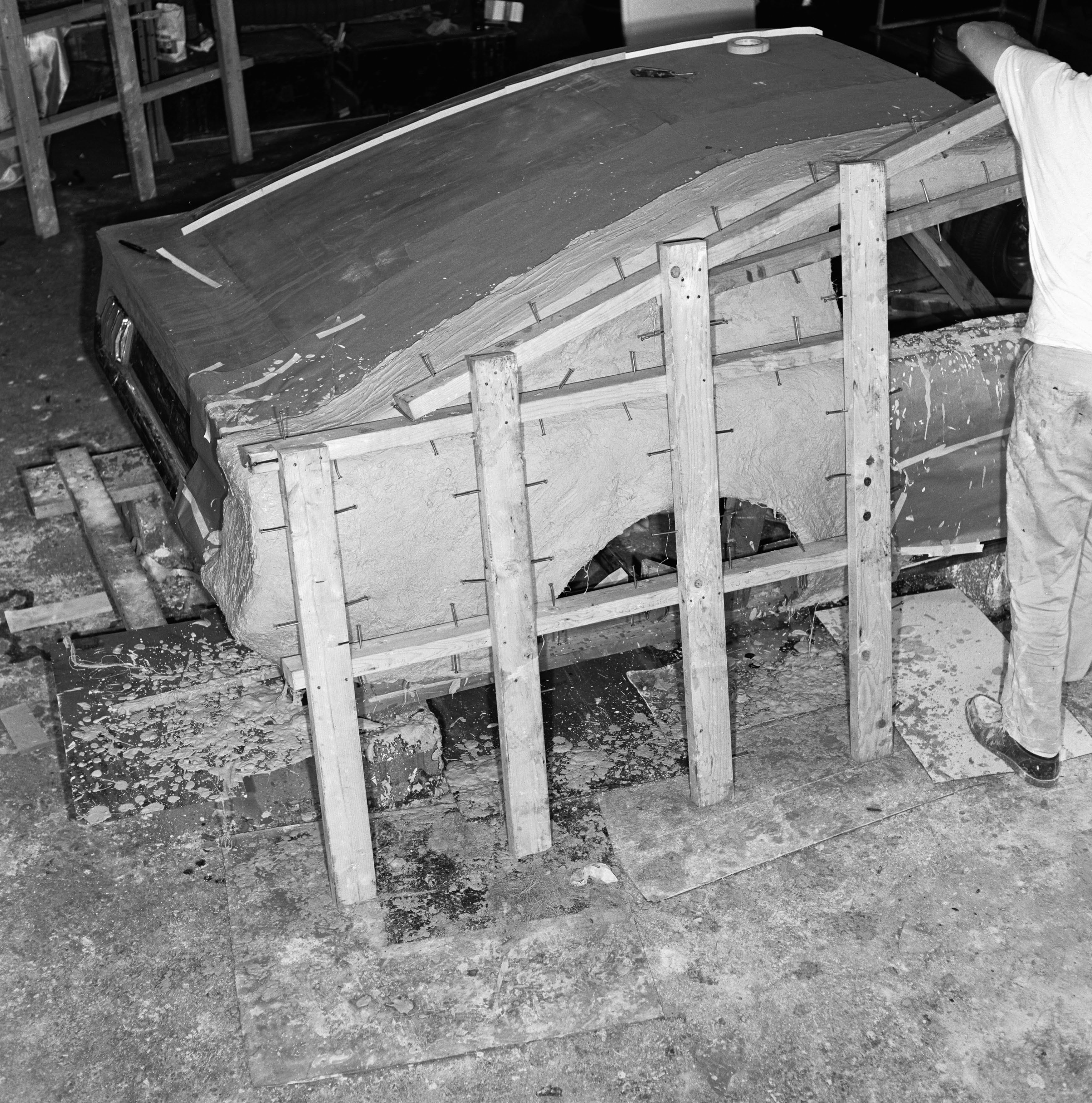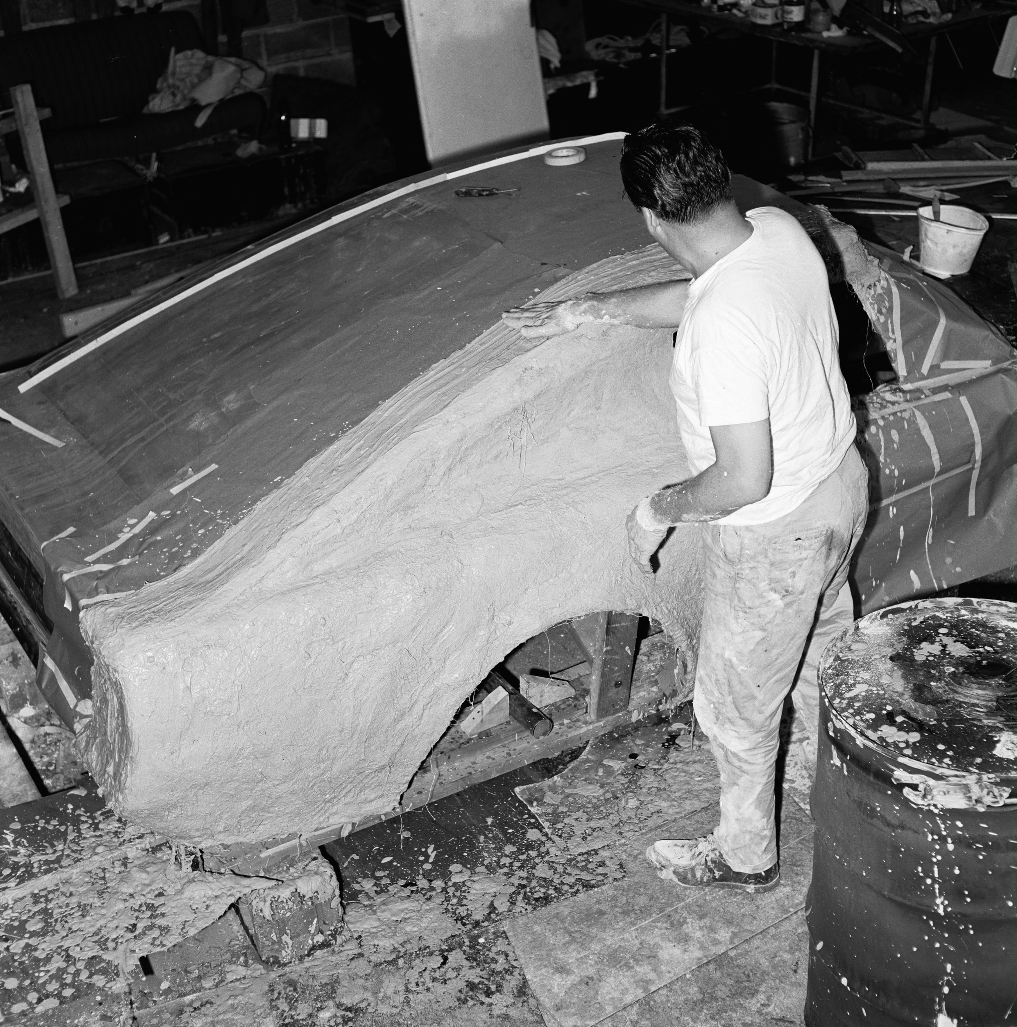 Caption: The rear window area is incised in the clay, and a sweep used to carry through the quarter panel's concave section.