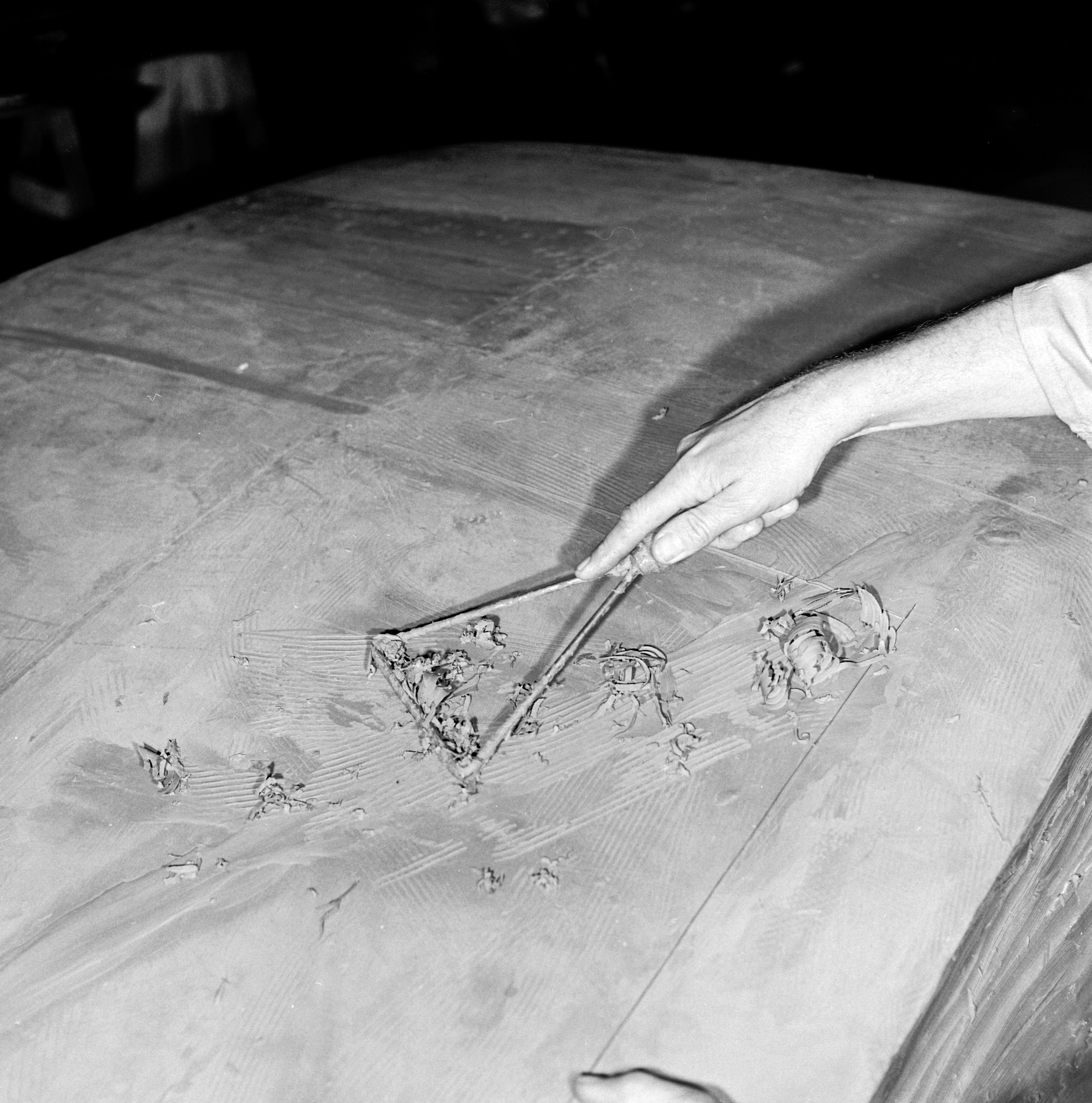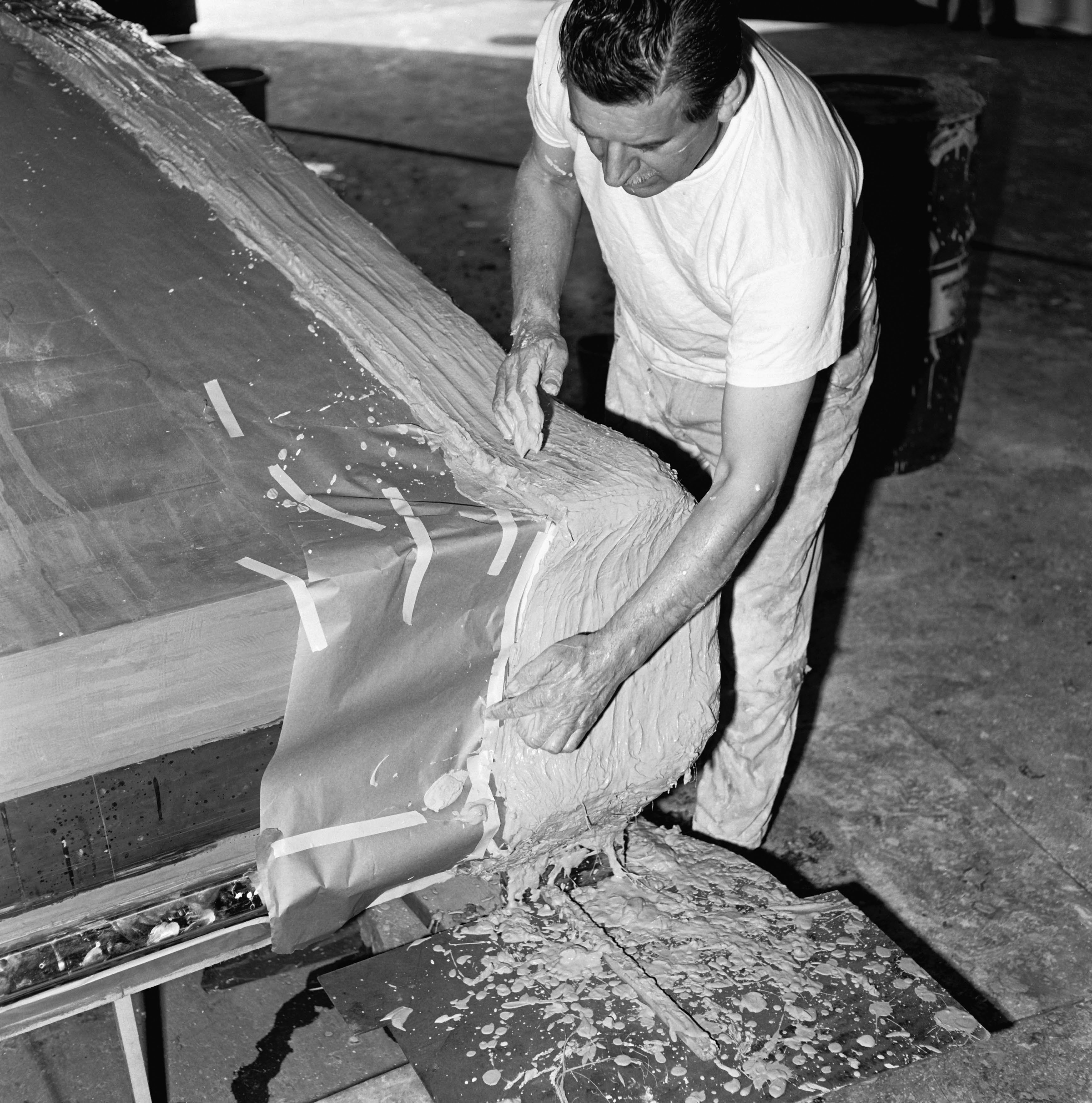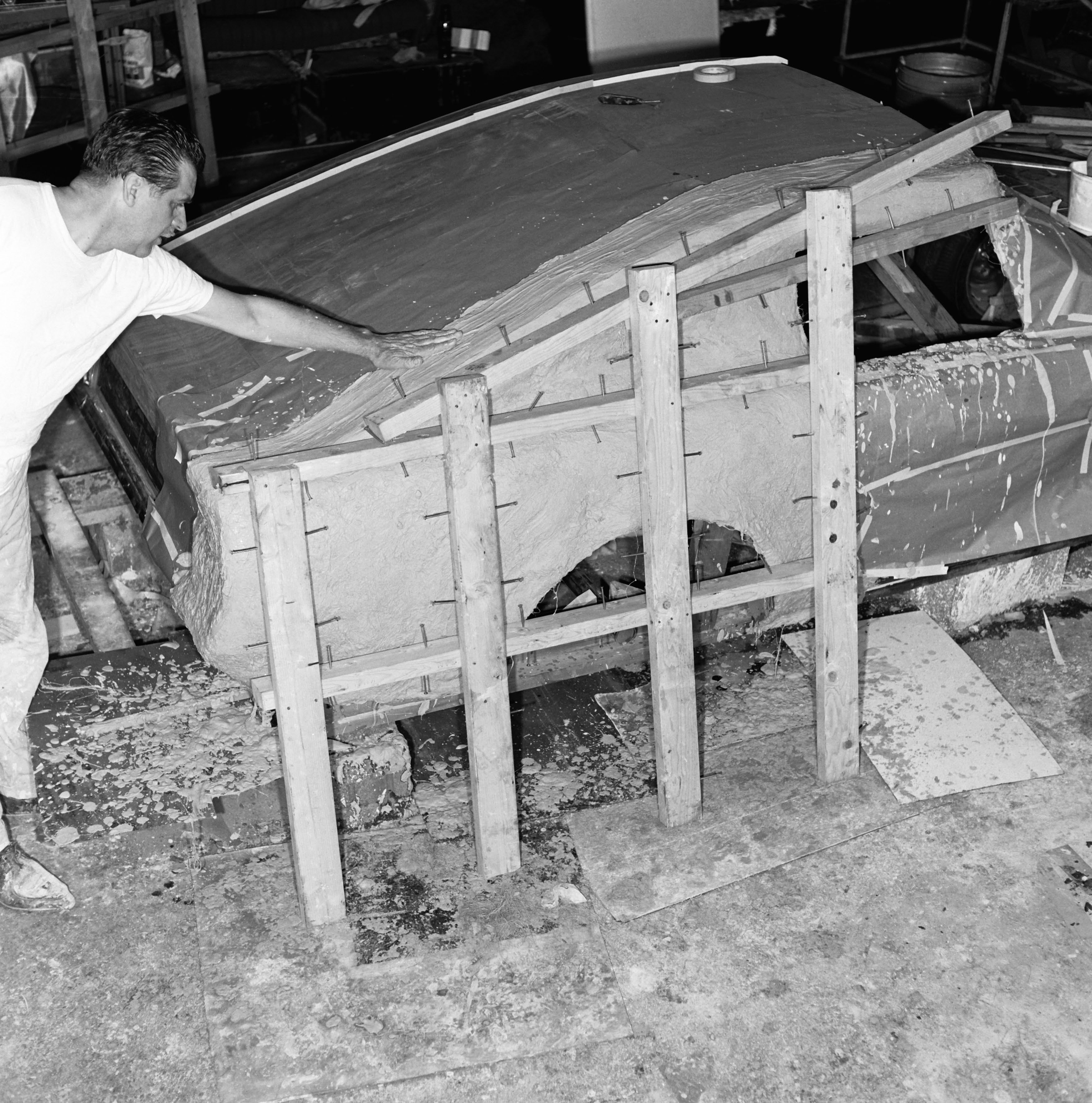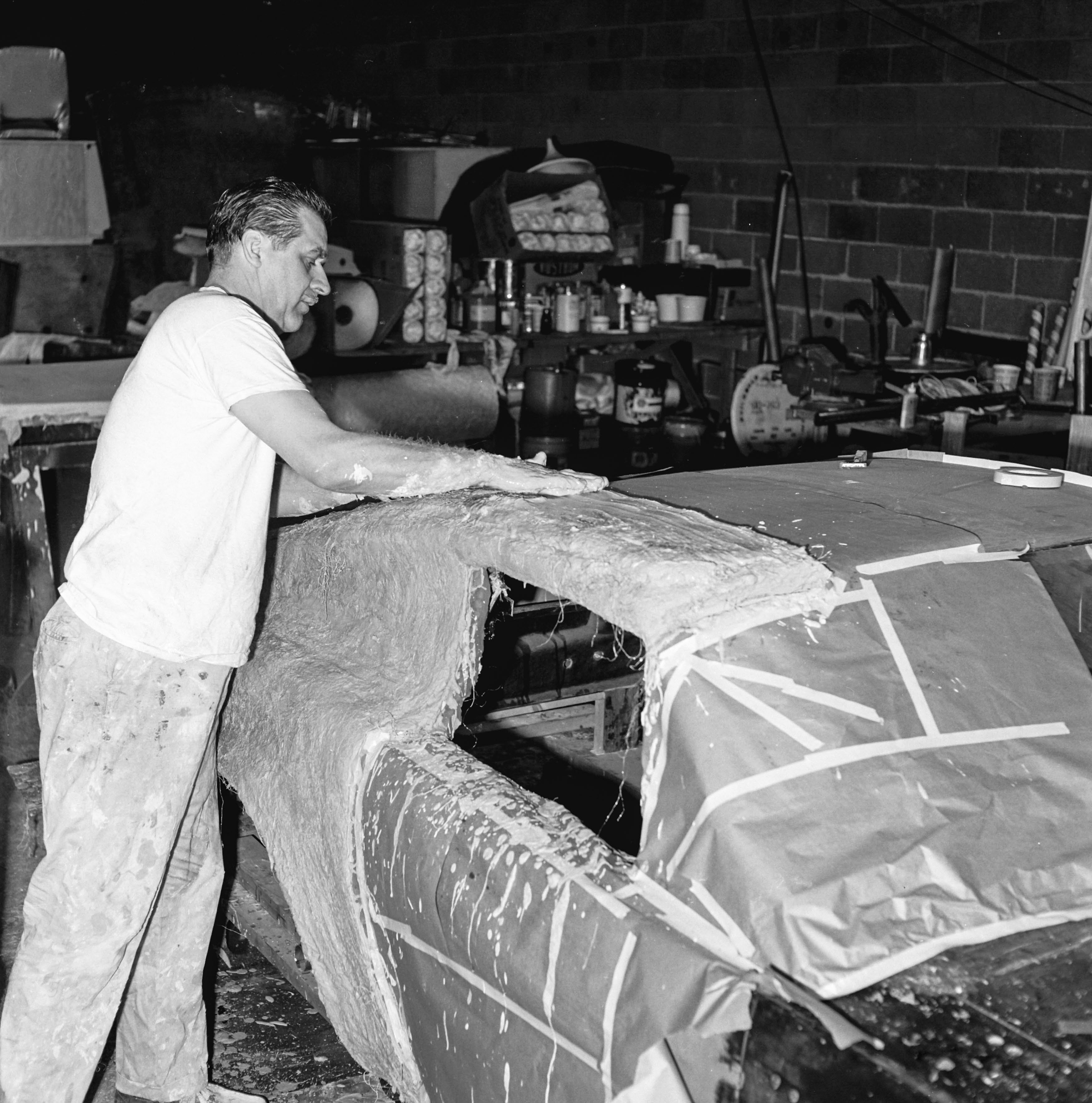 Caption: The rear window area is incised in the clay, and a sweep used to carry through the quarter panel's concave section.
