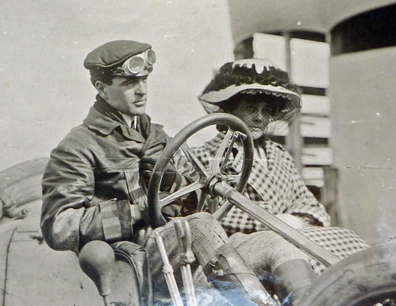 William K. Vanderbilt Jr. and his wife Virginia sitting in their "Vanderbilt" Renault.