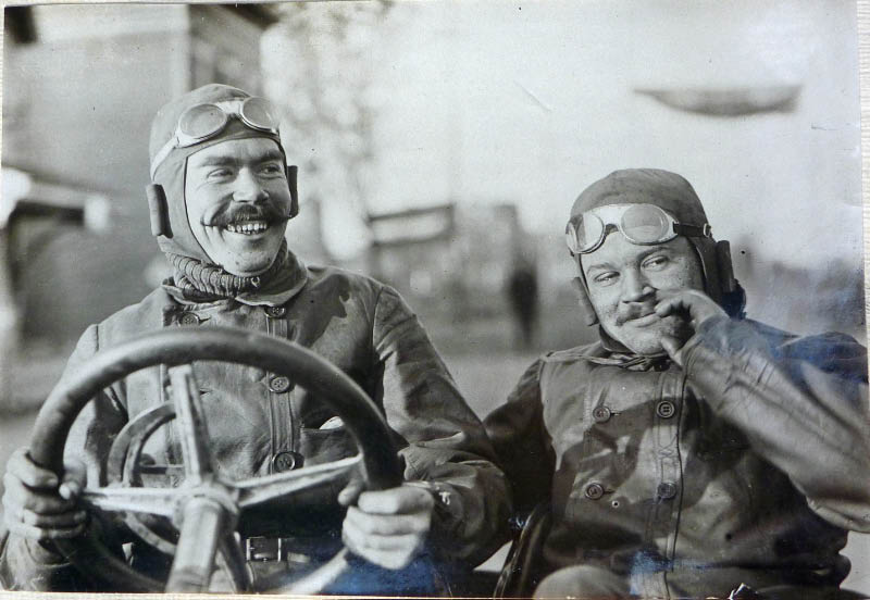 Driver William Luttgen (left) and his mechanician Pfeiffer. Luttgen (1877-1965) was the last living participant of the 1904 Vanderbilt Cup Race.