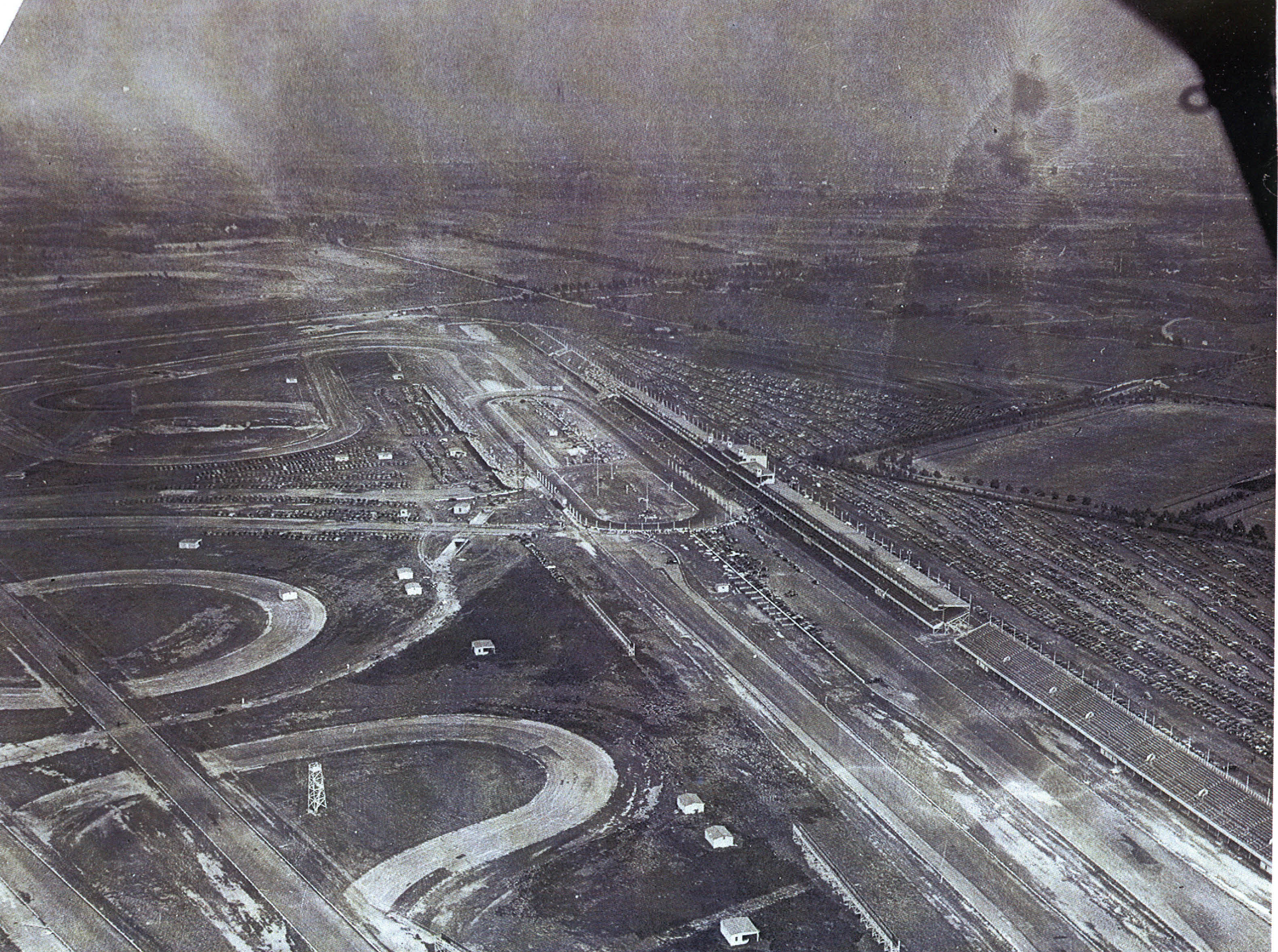 Vitesse 2: "The 1939 oval was a half miler. There's an aerial photograph of the whole track on Howard Kroplick's wonderful Vanderbilt Cup site, which seems to show a mixed surface. I'm sure Howard can give you chapter and verse though."